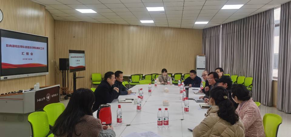 音乐学院院长周特古斯首先向调研组汇报了学院院情以及疫情防控工作,以及学科建设、人才引进、科研工作、地方合作等工作开展情况,介绍了学院发展的整体思路、工作目标和在未来发展建设中重点规划和努力方向。副院长吴洋围绕教学工作,从课程体系、专业发展、师范认证等方面进行了补充汇报,介绍了学院积极探索音乐专业教学的“个性化”培养模式的方法举措。