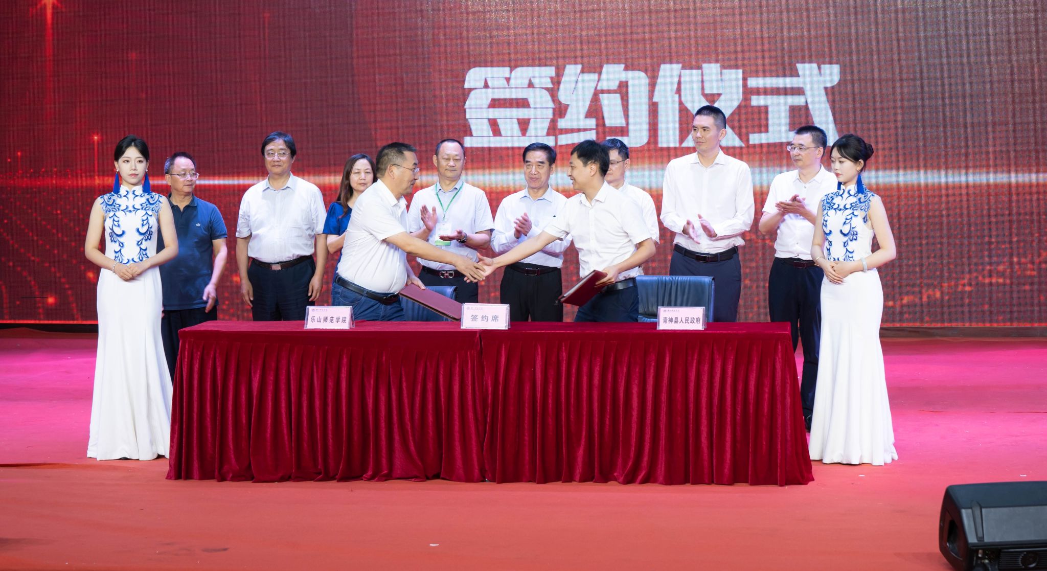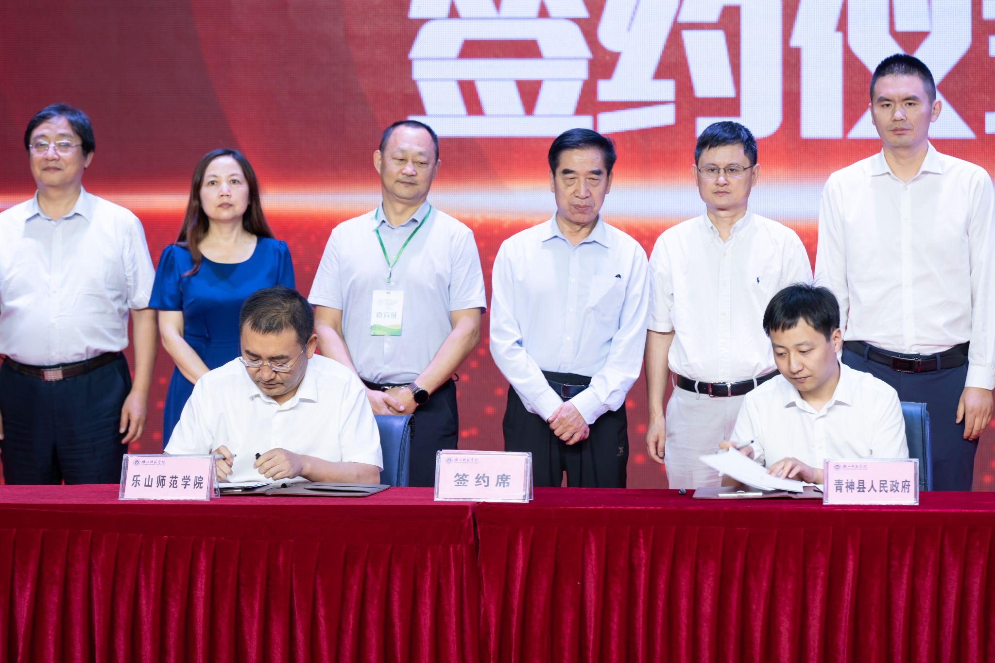 竹类病虫防控与资源开发四川省重点实验室主任杨瑶君与青神县竹编产业园区管委会党工委书记张旭代表校地双方签订合作协议。