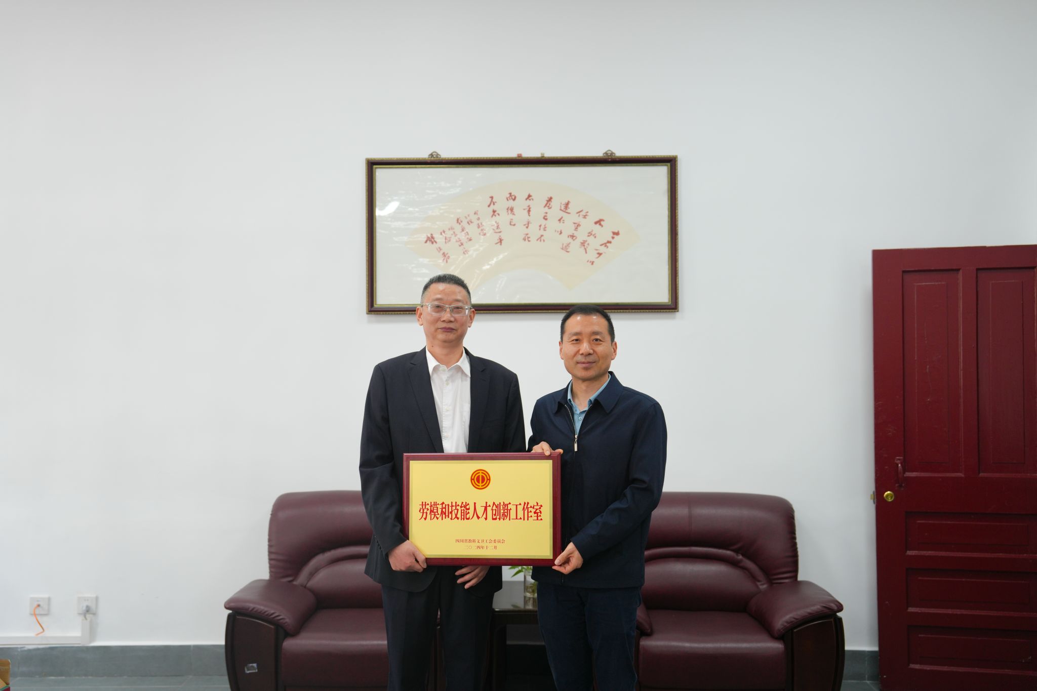 同时,王俊兵一行为获得第四批四川省教科文卫系统“劳模和技能人才创新工作室”荣誉的廖久明教授授牌。廖久明教授作为我校杰出的科研工作者,长期深耕于郭沫若研究领域,成果丰硕。此次授牌 “劳模和技能人才创新工作室”,不仅是对廖久明教授个人科研能力的肯定,更是对我校在特色研究领域持续发力、不断创新的鼓励,为我校进一步深化人才培养、加强科研创新工作注入了强大动力。