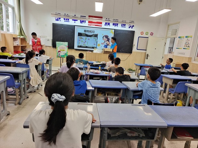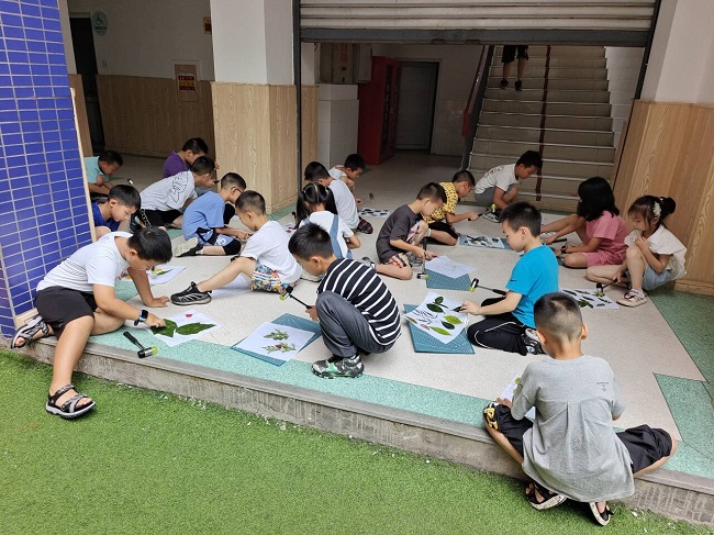 本网讯(文、图/冯春江)为增进社区儿童对植物的了解与认知、体验自然之美。7月17日,生命科学学院暑期社会实践团队赴徐家扁社区开展了“拓印绿意,生命之美”社会实践活动,让同学们更加深入地了解和欣赏自然之美,提升自然科学素养。