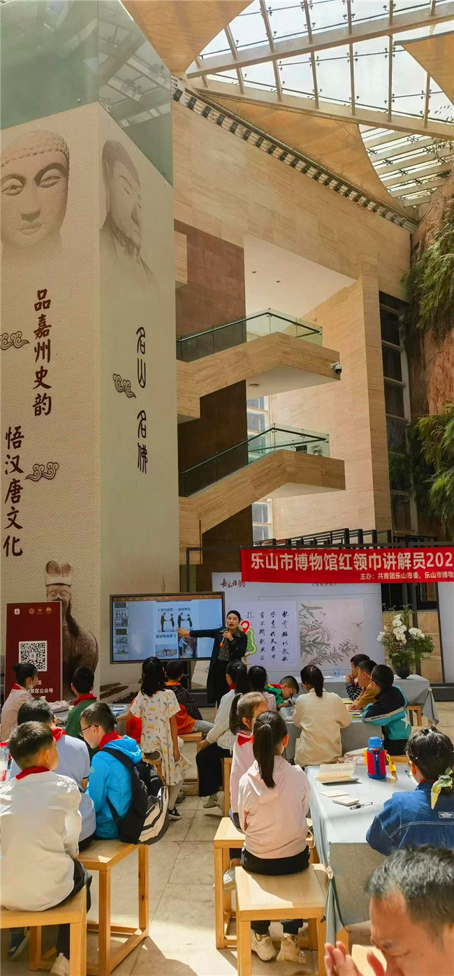 本网讯(文、图/江馨雨)5月14日,为进一步深入学习贯彻习近平新时代中国特色社会主义思想,秉承“世界遗产,走向未来”的理念,旅游与地理科学学院由酒店管理教职工党支部牵头,在乐山市博物馆举办了红领巾讲解员集中培训。酒店管理教职工党支部书记秦容副教授、支部党员吴薇老师担任培训主讲教师,支部还特邀文学与新闻学院李康云教授为学员们做讲座。