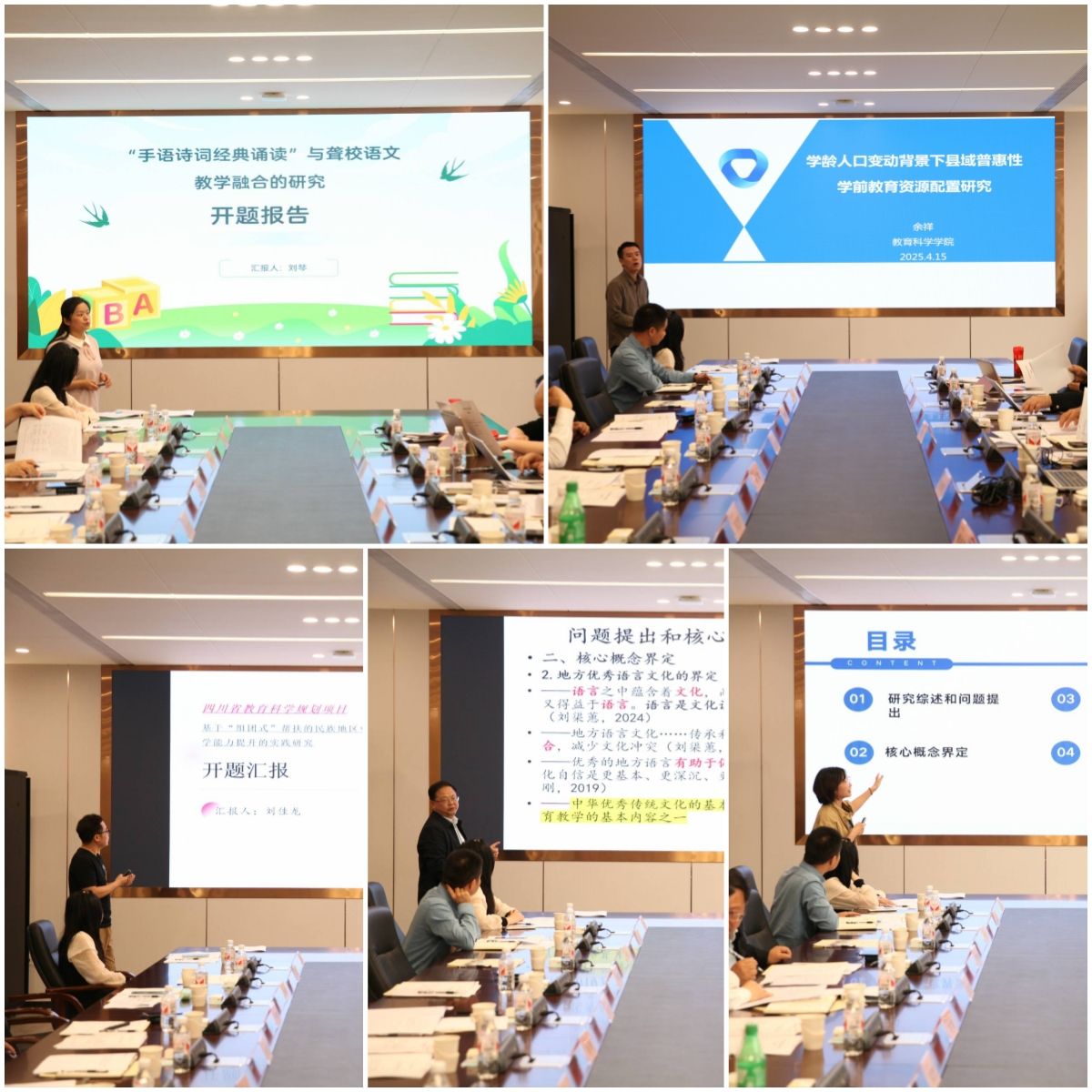 报告会上,五项课题“地方优秀传统语言文化在大中小学人才培养中的一体化建构与实践”“社会文化视角下听障学生的心理健康提升研究”“学龄人口变动背景下县域普惠性学前教育资源配置研究”“基于‘组团式’帮扶的民族地区中小学教师学科教学能力提升的实践研究”“‘手语诗词经典诵读’与聋校语文教学融合的研究”的负责人、主研人围绕各自的研究主题,详细地阐述了问题指出、研究综述与意义、研究目标与内容以及预期成果等方面。