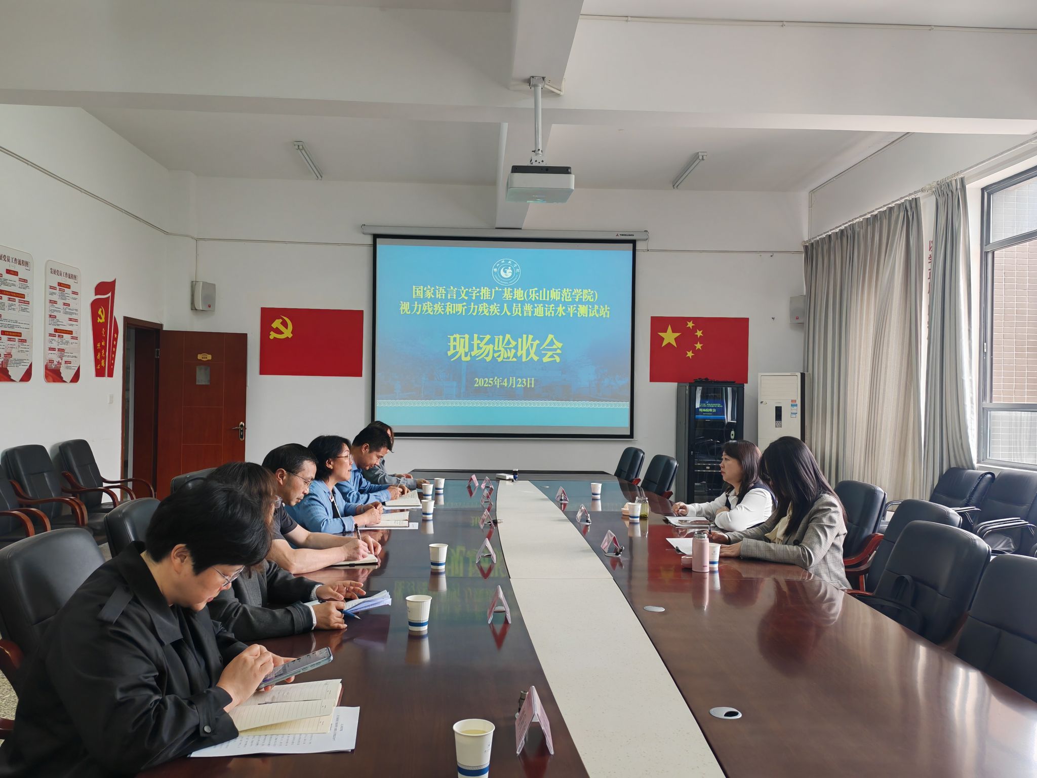 本网讯(文、图/杨婉馨)4月23日上午,四川省普通话水平测试中心朱海燕主任、王智伟,四川省残疾人联合会教育就业处景义婷副处长一行来校验收四川省视力残疾和听力残疾人员普通话水平测试站。教师教育学院副院长徐波、职员胡涛,特殊教育学院党委书记谢延明、院长张梅、副院长张杨、残疾人高等教育负责人刘秋竹、教师袁梅玲全程参与验收工作。