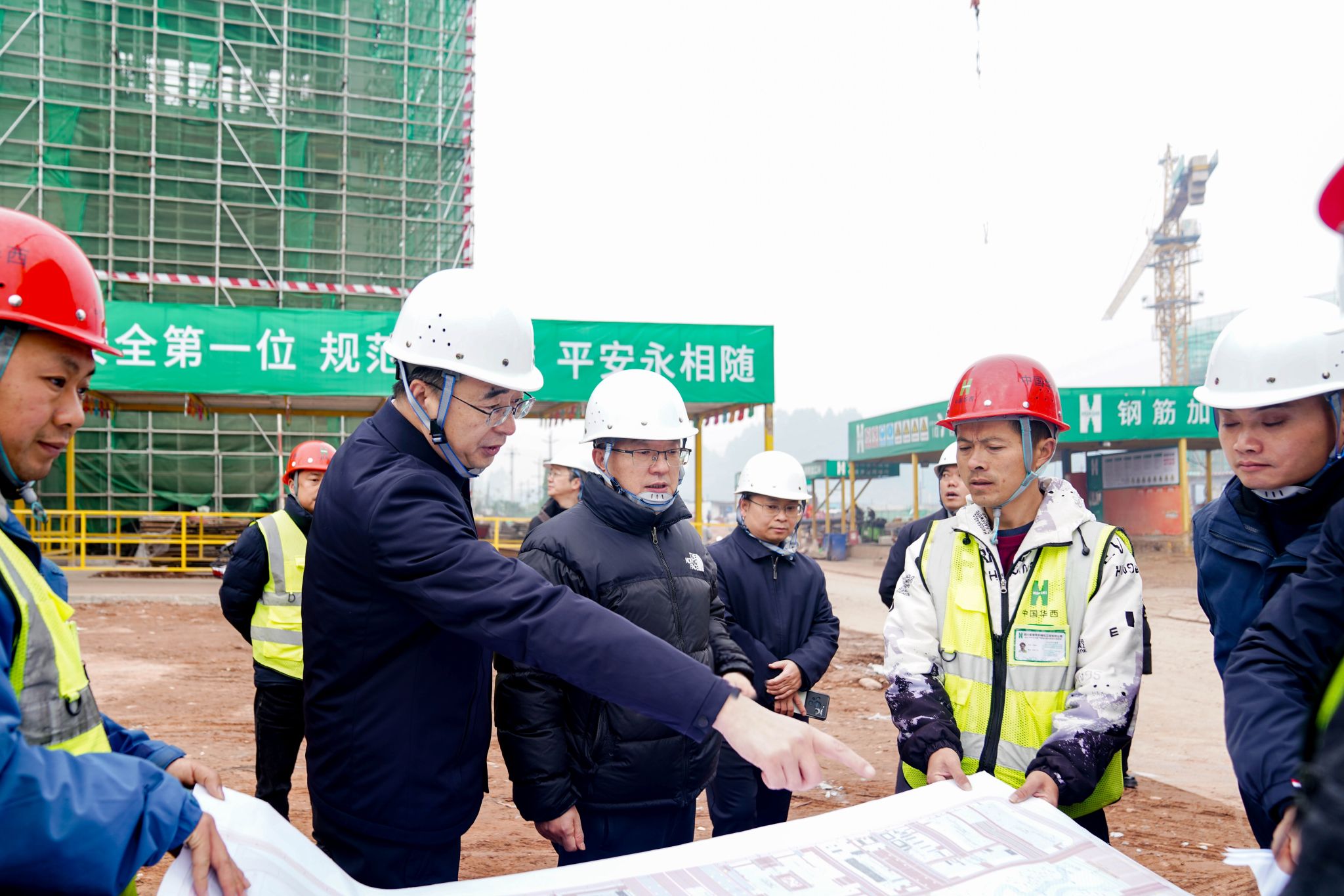刘进、李方裕一行在构筑物及基础设施项目现场详细听取了施工单位对西校门及相关道路、管网等拟建设项目的汇报。校领导还深入教学区施工现场,查看公共教学楼、理工组团等重点工程进展,并重点考察文体中心游泳池的规划定位与施工进度。考察期间,校领导详细询问施工组织、材料选用及安全措施落实情况,强调要在确保质量与安全的前提下,科学安排工期、优化流程,稳步推进项目建设。