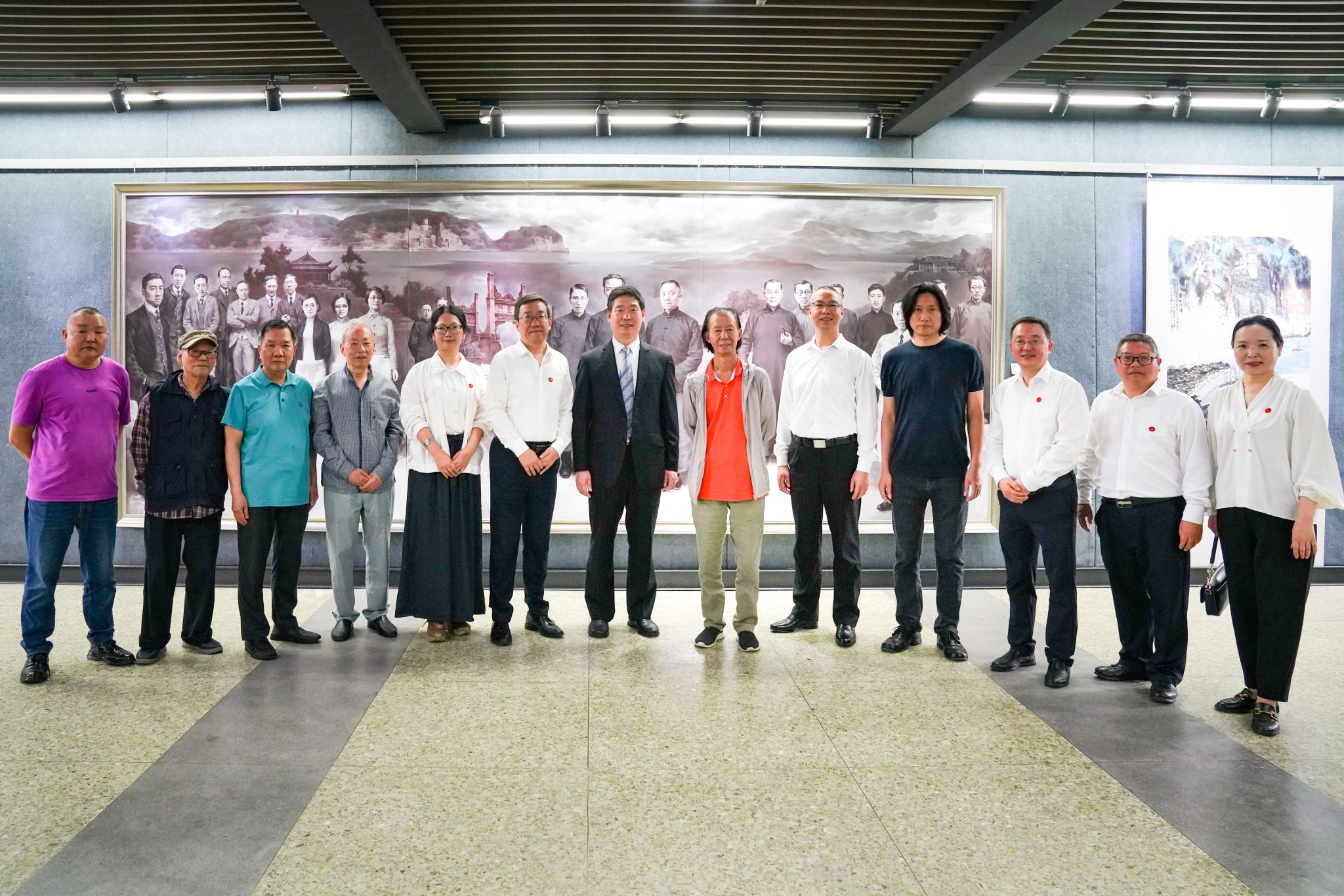 随后,参加开幕式的领导和嘉宾一起现场参观了书画作品展。据了解,现场展出的130幅作品是由我校美术与设计学院的师生、校友和乐山的艺术家们一起,用他们手中的画笔重塑武大西迁乐山的历史,他们选取当年的故事、当年的诗文以书画的方式加以呈现,表达对武汉大学先贤们的敬仰,对武大在乐文脉的赓续。