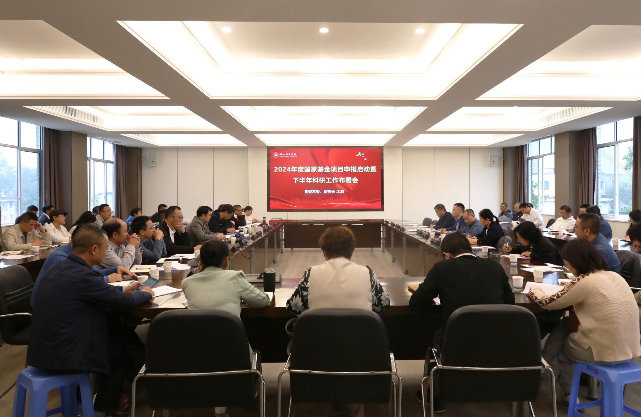 农向总结了2023年度国家基金项目申报立项工作,安排布置2024年度国家基金项目申报工作及2023年度下半年科研工作。周勇通报2023年度各学院科研进展情况,唐书怡通报了科研平台建设情况,并重点强调了实验室安全工作。