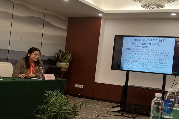 研讨会聚焦语文辞书编纂与词汇语义学、辞书大家编纂思想、传统文化传承、品牌辞书修订现代化及融媒辞书编纂等多个议题,通过两场主题报告与八场分组讨论展开深入交流。陈熹老师在分组报告中分享了题为《近义词“单独”与“独自”辨析》的研究成果,并就辞书例证的编写发表了自己的见解。