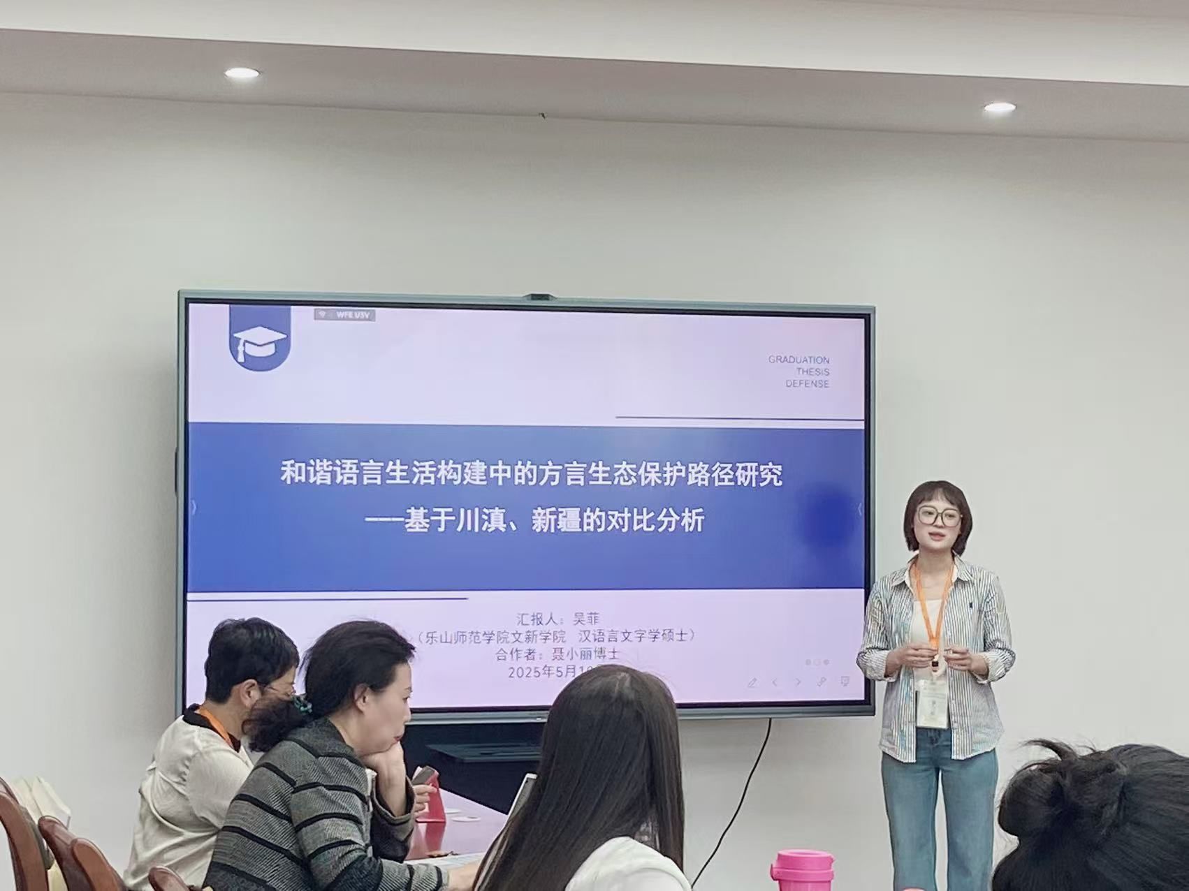 吴菲和聂小丽在分论坛作了题为“和谐语言生活构建中的方言生态保护路径研究——基于川滇、新疆的对比分析”的分享。她们基于川滇交界多民族聚居区与新疆维吾尔自治区的数据,对比分析方言使用现状与文化传承困境,提出“动态平衡、地理适应、认同重构”的方言生态保护路径。研究指出,方言不仅是文化载体,更是维系文化认同的重要纽带,建议将方言保护纳入地方文化振兴规划,并通过体系化的教育实现代际传承。