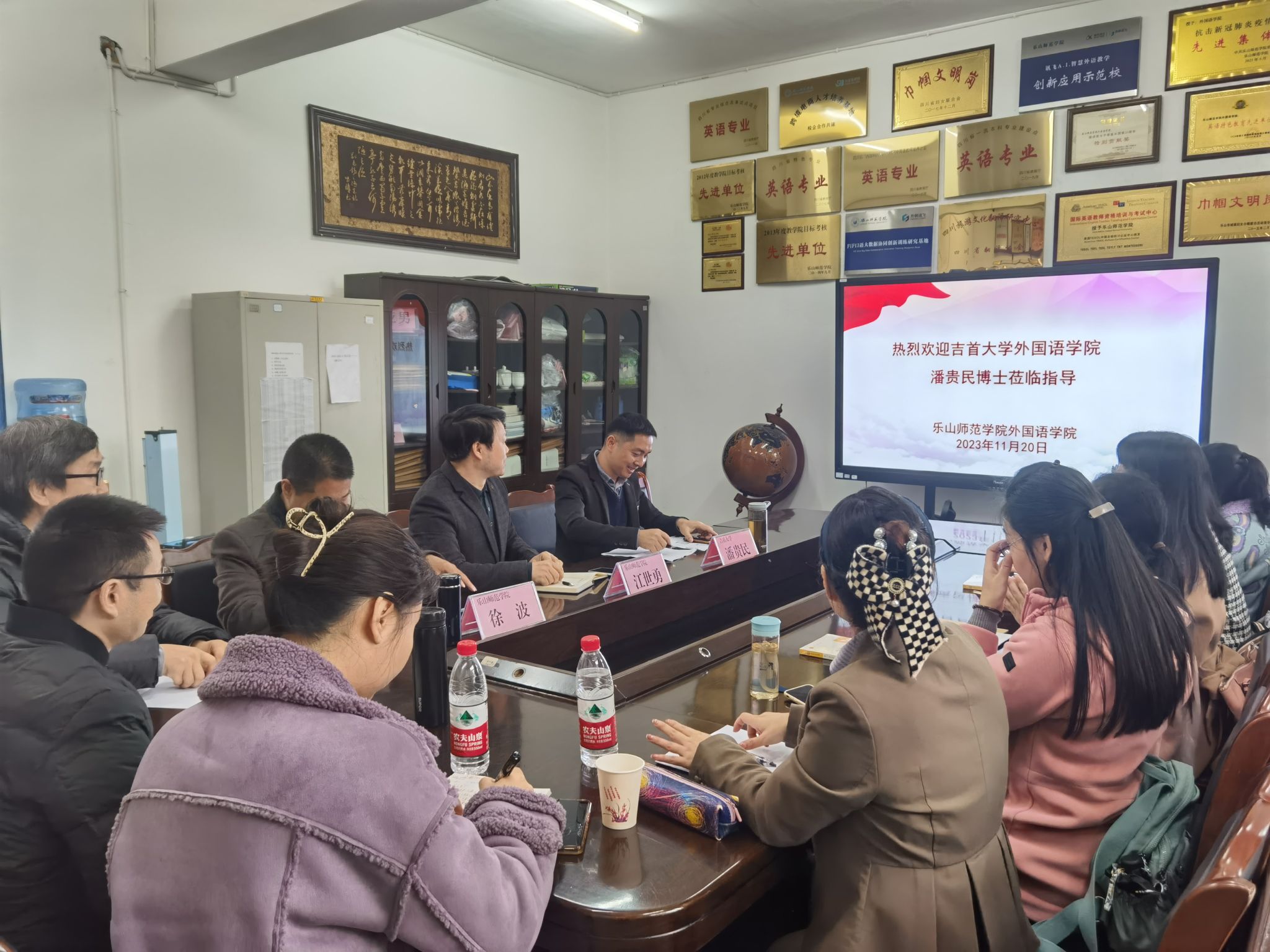 本网讯(文图/刘紫英)2023年11月20日上午,为进一步提升教师科研能力和高级别课题立项成功率,吉首大学外国语学院日语系副教授、硕士生导师潘贵民博士受邀到外国语学院三楼会议室开展学术指导。外国语学院院长江世勇、副院长徐波及学院骨干教师代表参加了本次学术交流会。