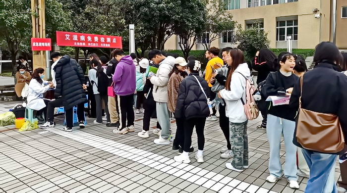 本次宣传活动采取发放宣传单、避孕套、免费艾滋病筛查送蛋糕、伞、水杯、U盘、台灯等小礼物的方式。医务人员详细向同学们讲解了艾滋病的危害、传播、阻断和预防;指导同学们树立正确的性观念和性行为,避免高危性行为;鼓励同学们主动检测,早发现、早治疗。前来咨询和筛查的同学络绎不绝,现场共发放宣传单近千份,避孕套500盒,HIV筛查近300名同学。