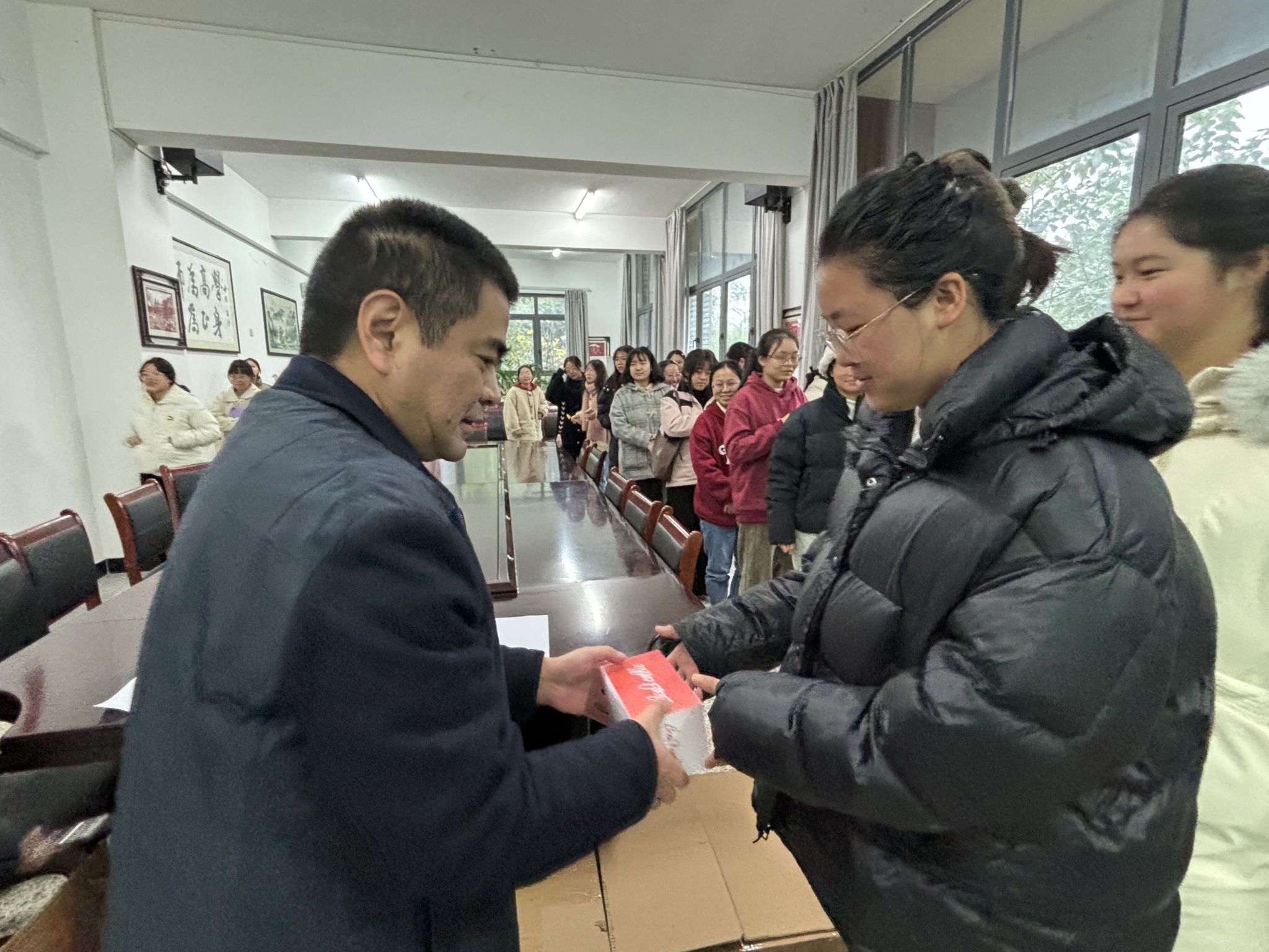 最后,老师们向同学们赠送了学院为大家准备的考研慰问品,同学们深受鼓舞,希望教科学子都能在研究生考试中取得优异成绩。