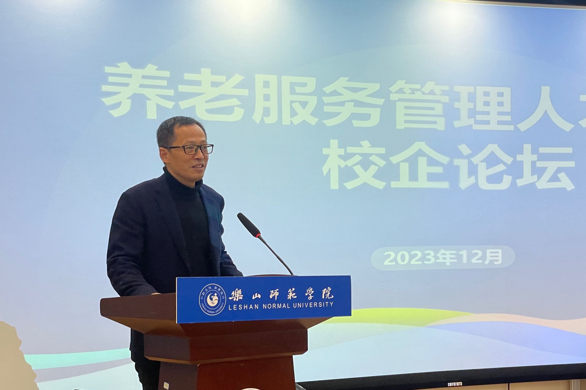 论坛由苏祥主持,王祖勇、卢华军、程勇三位分别致辞。王祖勇从2023年四川省民政厅出台的《四川省推进基本养老服务体系建设实施方案》文件中认识到在养老产业中专业队伍建设和人才培养质量提升的重要性和紧迫性,需要推动养老产业的发展和人才培养模式的创新。卢华军介绍了乐山市的养老现状,提出进一步深化产教融合与校企合作,促进研究成果转化。程勇向参会者表示热烈的欢迎,介绍“养老服务管理”专业的重要性和招生情况,提出推动学院养老服务管理人才培养需要大家的支持和帮助。论坛中,与会专家围绕“养老服务管理人才培养”作主题发言,提出加强课程体系建设、深化产教融合实践基地的探索与发展、创造更好的育人环境等,帮助学生把所学专业知识转化为应用能力,提升学生实践能力和综合素养。