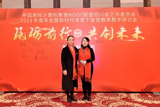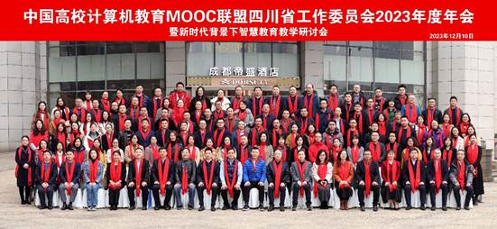 本网讯(文、图/秦洪英)中国高校计算机教育MOOC联盟四川省工作委员会2023年度年会暨新时代背景下智慧教育教学研讨会于2023年12月9日—10日在成都召开。电子信息与人工智能学院组织秦洪英、张贵红两位老师前往参加会议。大会听取了四川省教育厅高教处陈建跃调研员讲话、西南财经大学教务处副处长许志和CMOOC联盟四川工会主任周世杰教授致辞,以及CMOOC联盟四川工委2023年工作总结与2024年工作计划、CMOOC联盟四川工委优秀理事单位、优秀工委成员表彰,还有来自电子科技大学、西南民族大学、西南财经大学、成都信息工程大学、西南石油大学、四川轻化工大学等高校和中软国际教育集团、头歌等企业关于计算机类在线课程建设、工程教育认证、实践教学、教育部虚拟教研室建设、产学合作等方面的经验分享。