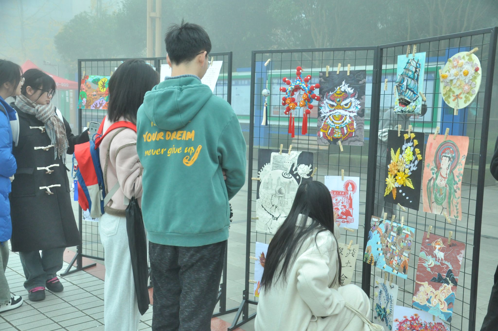 12月6日,学院在桂花广场开展了师范技能成果展。现场除了众多优秀作品展览外还设有多个手工制作点和书法写作点供全校同学参与。各学院的同学对此抱有极大的好奇心与热情,他们积极参与活动,认真地绘画与书写。在“师魂师情书心意”书法活动中,同学们相互交流书法技巧。在“师范魂、基层梦、教育情”活动中,同学们相互分享交流自己顶岗支教、教育见习时对师范教育、基层教育的体会感悟,写下自身对教育发展的寄语,和自己以后成为一名教师的期待。