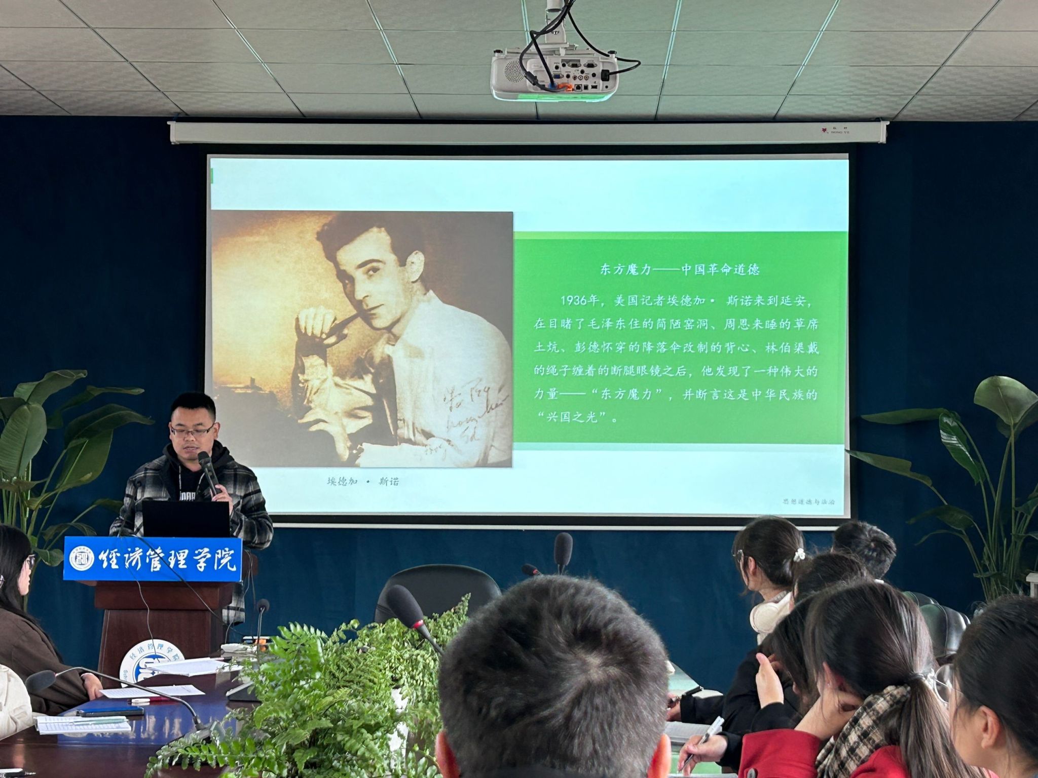 本网讯(文/高瑞、毛婷 图/赵钰婷)12月8日,经济管理学院在学院会议室开展了以“传承红色基因,弘扬革命道德”为主题的青春团校第三次理论课暨结业典礼。本次理论课旨在引导青年学生深入了解中国革命道德的形成与发展,探讨中国革命道德的当代价值,让红色基因在青年一代中延续。