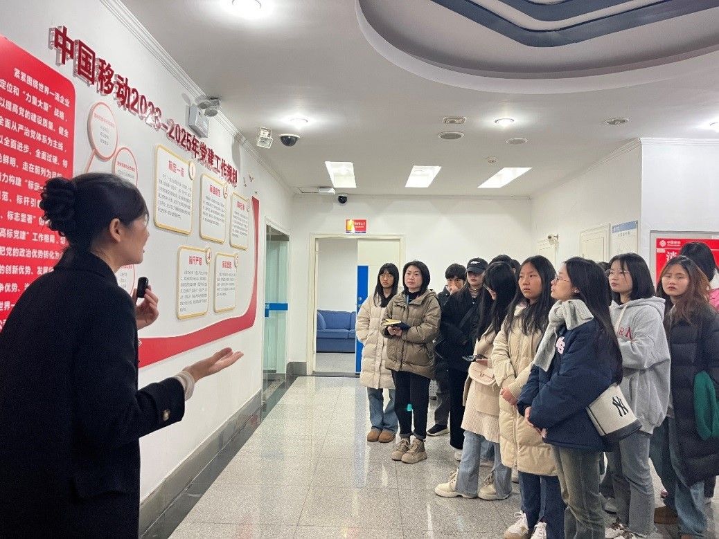 随后,同学们来到了中国移动通信集团四川有限公司乐山分公司。在这里,讲解员向同学们介绍了公司的三大责任,即政治责任——践行党的宗旨、社会责任——履行央企责任、经济责任——融入乐山经济,服务社会民生,让同学们对企业应该担当的社会责任有了进一步了解。同学们还参观了公司的荣誉墙和优秀员工墙,了解了公司的运行管理机制和发展理念。