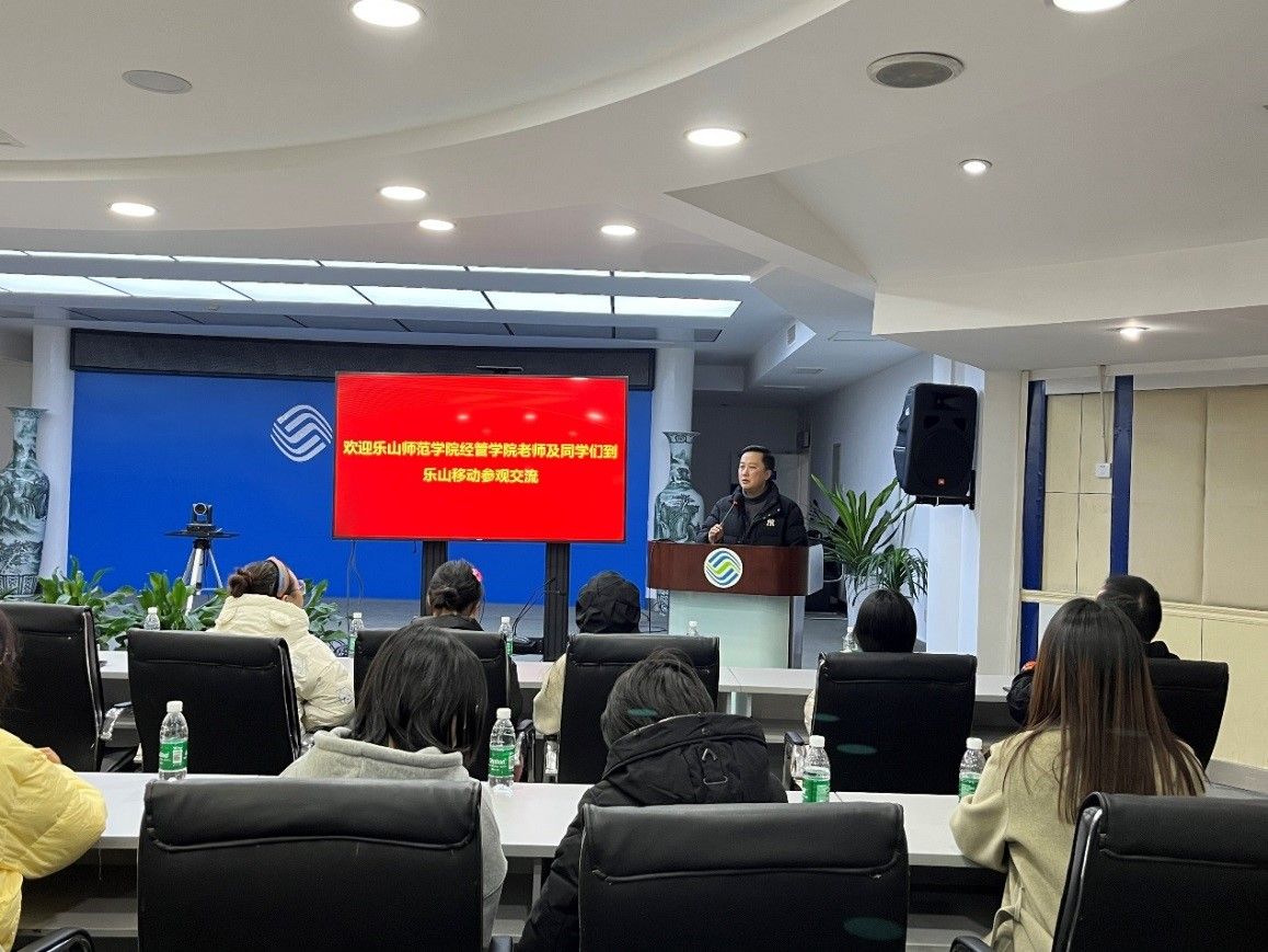 本网讯(文/陈果 图/吴双)12月15日,在经济管理学院辅导员王东健老师的带领下, 22级市场营销班的全体同学前往中国移动在线服务有限公司四川分公司和中国移动通信集团四川有限公司乐山分公司参观。这次参观旨在让同学们更深入地了解企业的运营机制和理念,开阔视野,为未来的就业打好基础。