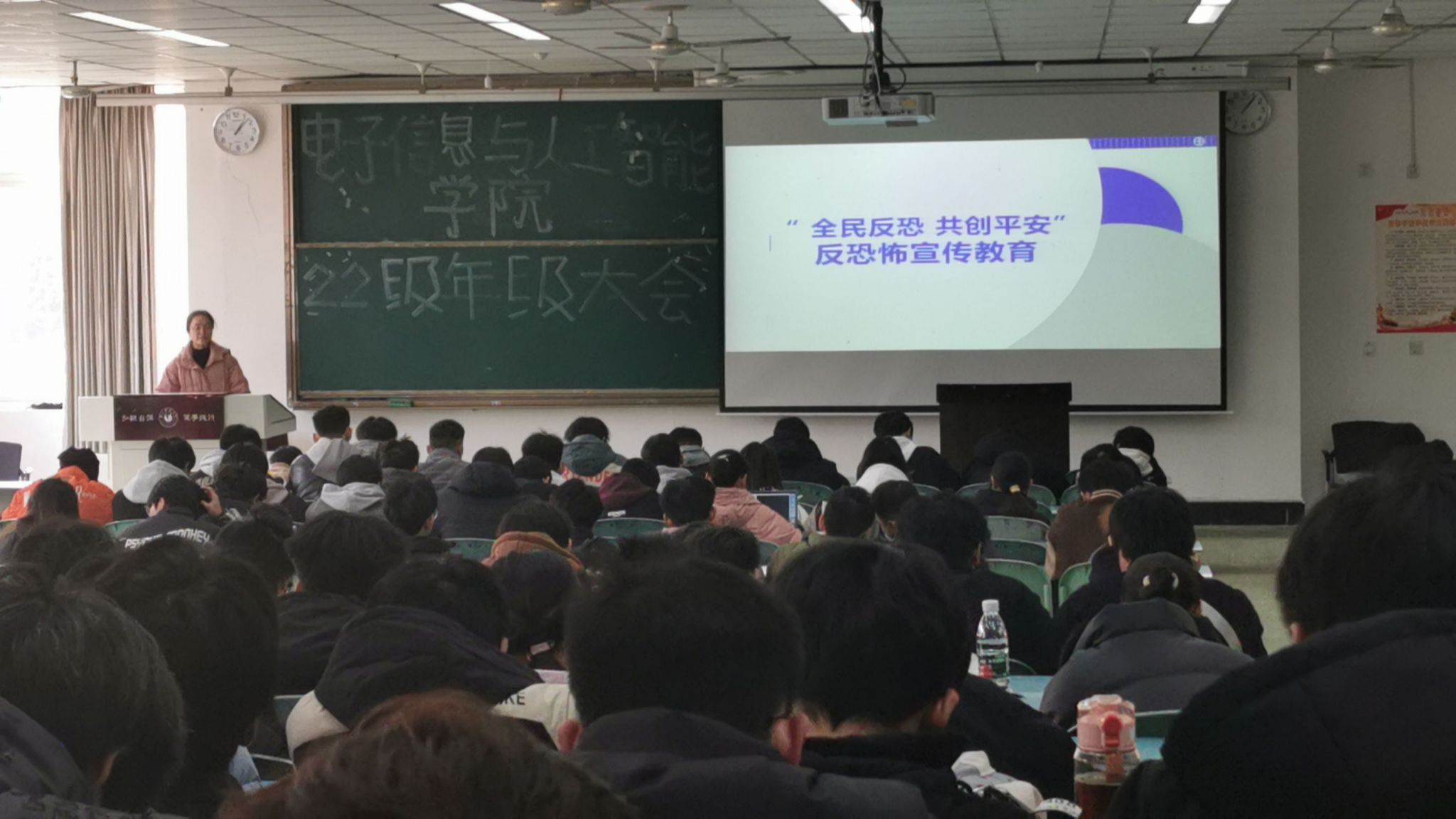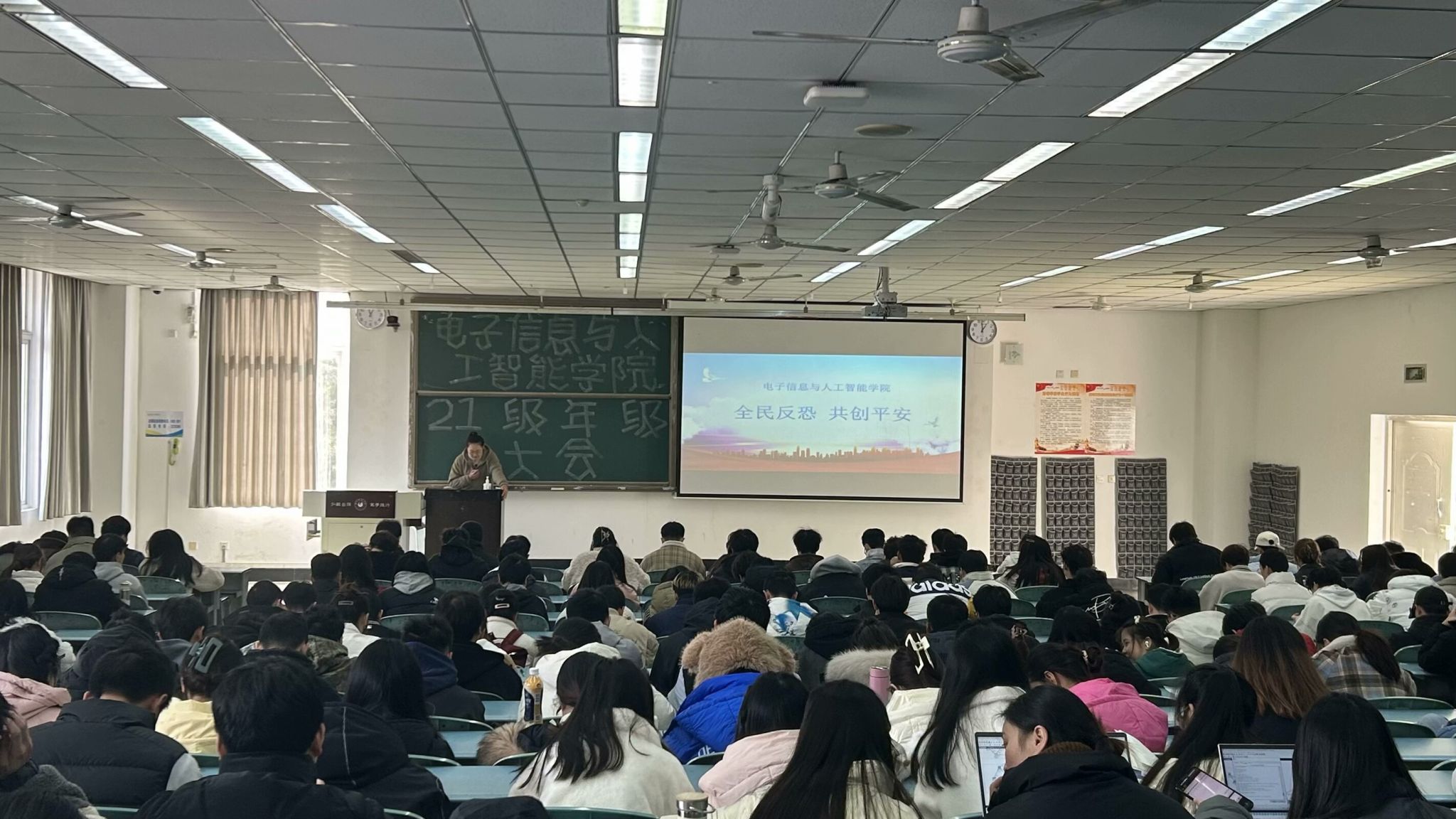 本网讯(文/狄红霞 图/陈雪婷)12月26日,电子信息与人工智能学院在行知楼101、125、201、特教A102多功能厅开展反恐怖宣传教育活动。此次活动旨在提高全体师生的安全意识和应对恐怖事件的能力,营造校园安全稳定良好氛围。本次活动由电子信息与人工智能学院辅导员雷雄锴、肖苗、狄红霞主持,21级、22级、23级同学共同参与。