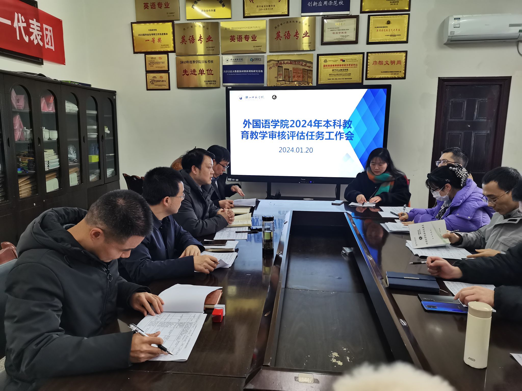 本网讯(文/代勇才 图/雷洪敏)1月20日下午,外国语学院在学院304会议室召开本科教育教学审核评估工作部署会。学院党委书记袁明锋、院长江世勇、副院长徐波、陈开富、各系部主任、专业负责人、教研办、学工负责人出席了会议。