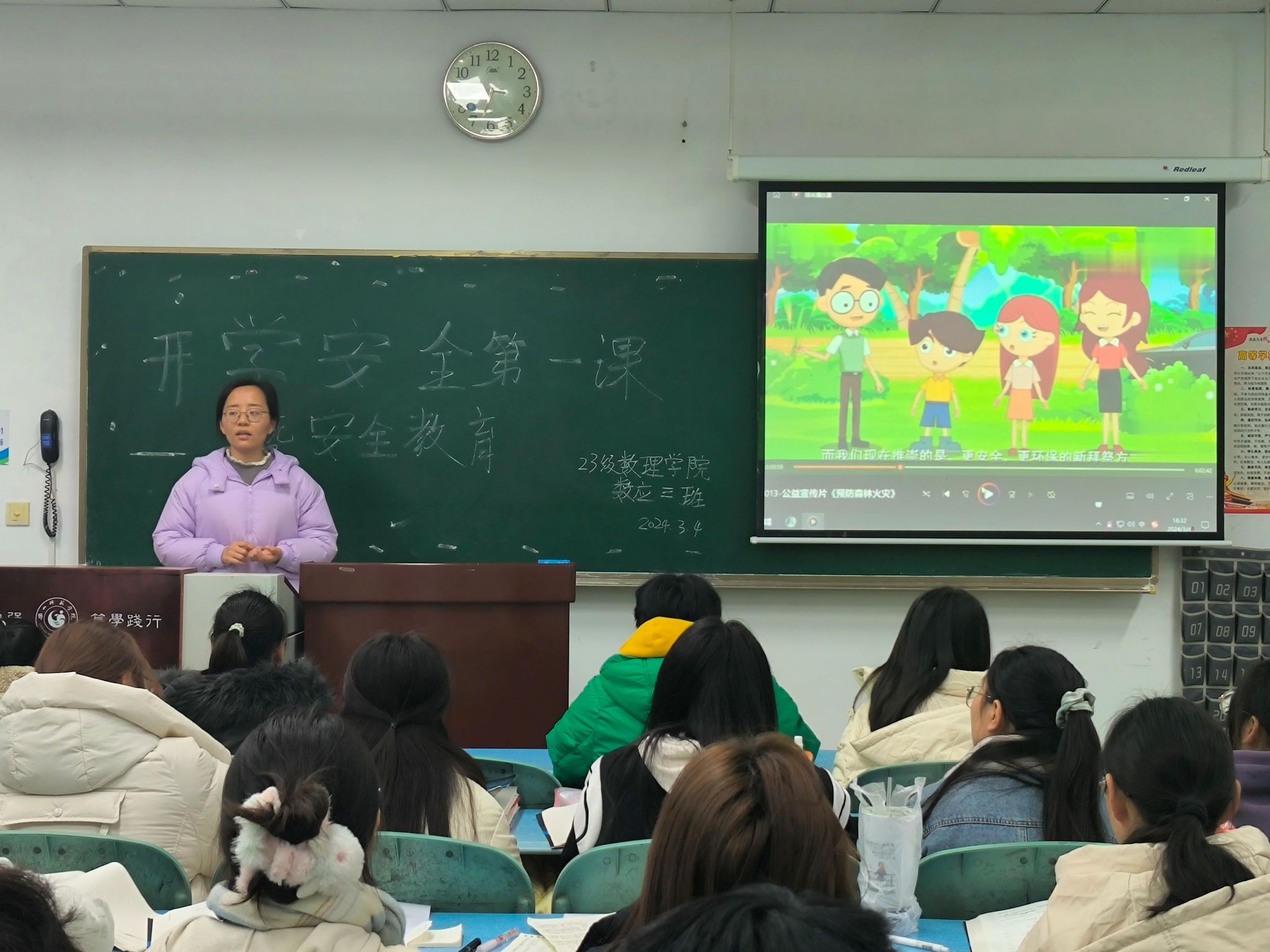 本网讯(文/田昆伦 图/曹琳、周永健、陈新凯)为提高同学们的安全意识,增强自我保护能力,及时防范春季开学期可能出现的安全隐患,3月5日-6日,数理学院各年级各班在行知楼教室开展了“开学安全第一课暨安全教育主题班会”,辅导员全程参加并指导。