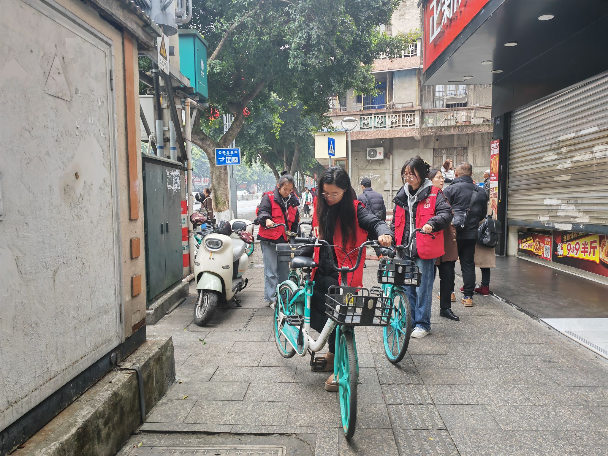 在海棠街道办下辖的水井冲社区,校青志中心和美设学院青年志愿者在社区工作人员的指导下,多维度进行社区日常志愿服务:他们维持马路秩序,他们发放环保宣传资料,他们对广告乱乱张贴,共享电瓶车违规放置进行清理,他们为居民免费修剪头发、测量血压等,身体力行践行雷锋同志“为人民服务”的精神。