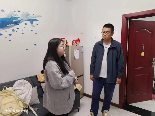 本网讯(文/黄大智 图/杨芳)为进一步加强对校外住宿学生的管理,排查安全隐患,3月25日,学院党委副书记包天骏、辅导员曹力欢对学院校外住宿学生进行了走访与检查。