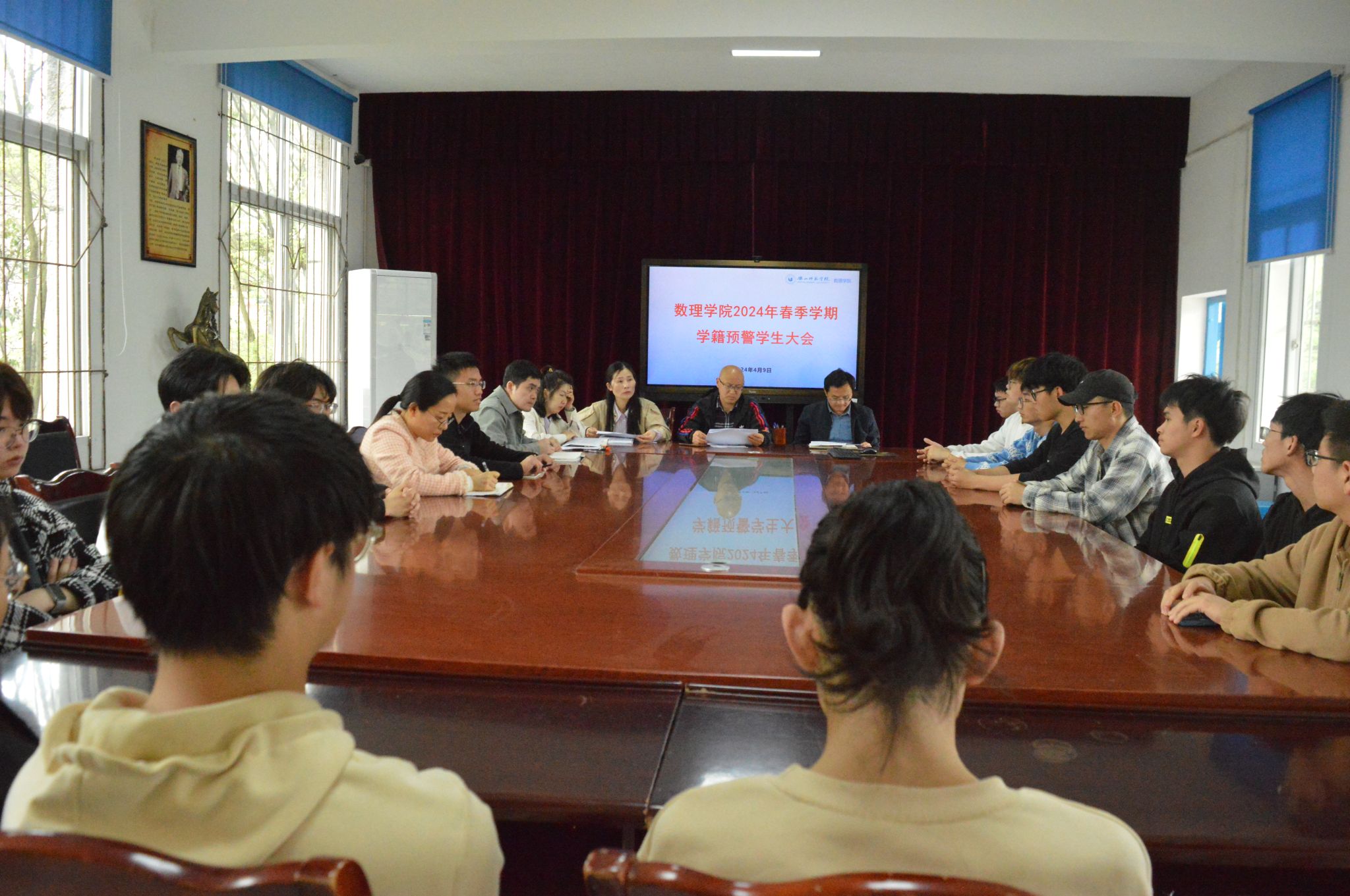 本网讯(文/佘飞扬、曹琳 图/刘兴会)为进一步加强学风建设,提高同学们的学习质量并增强自我管理意识,做好学业困难学生的帮扶工作,督促学生端正学习态度,提高自我约束能力。4月9日,数理学院在学院会议室召开学籍预警学生座谈会,党委书记马力强、院长屈小兵、党委副书记夏红、学生科长魏玮、各年级辅导员及26名被学籍预警学生参加。会议由马力强主持。