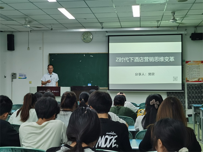 本网讯(文图/王瑛)5月30日晚,旅游与地理科学学院邀请学院外聘专家、四川禅驿集团品牌文化总监、乐山禅驿酒店总经理,卡塔尔世界杯决赛波胆预测 93级优秀校友樊欣在行知楼213教室为2023级旅游管理专业全体同学以《Z时代下酒店营销思维变革》为题开展讲座。