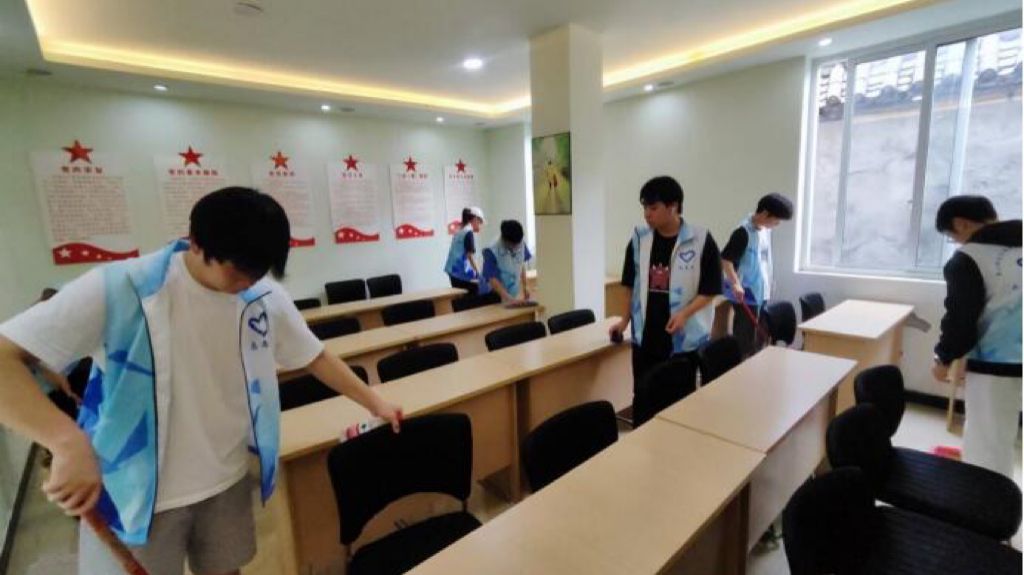 活动伊始,全体志愿者于下午一点半齐聚石碑门,经青志中心负责人核实人数无误后,即刻动身前往较场坝社区。抵达指定地点后,社区工作人员分配了具体任务,志愿者们便在社区工作人员的指导下,着手开展社区环境的卫生整治工作。队伍被划分为两个小组,一组负责清理灰尘,另一组负责擦拭桌椅。此外,志愿者们还开展了环保知识宣传活动,向居民们普及环保知识,倡导绿色生活方式。任务完成之后,志愿者们将所使用的工具归还原位,并合影留念。最终,由青志中心负责人统一组织返回。