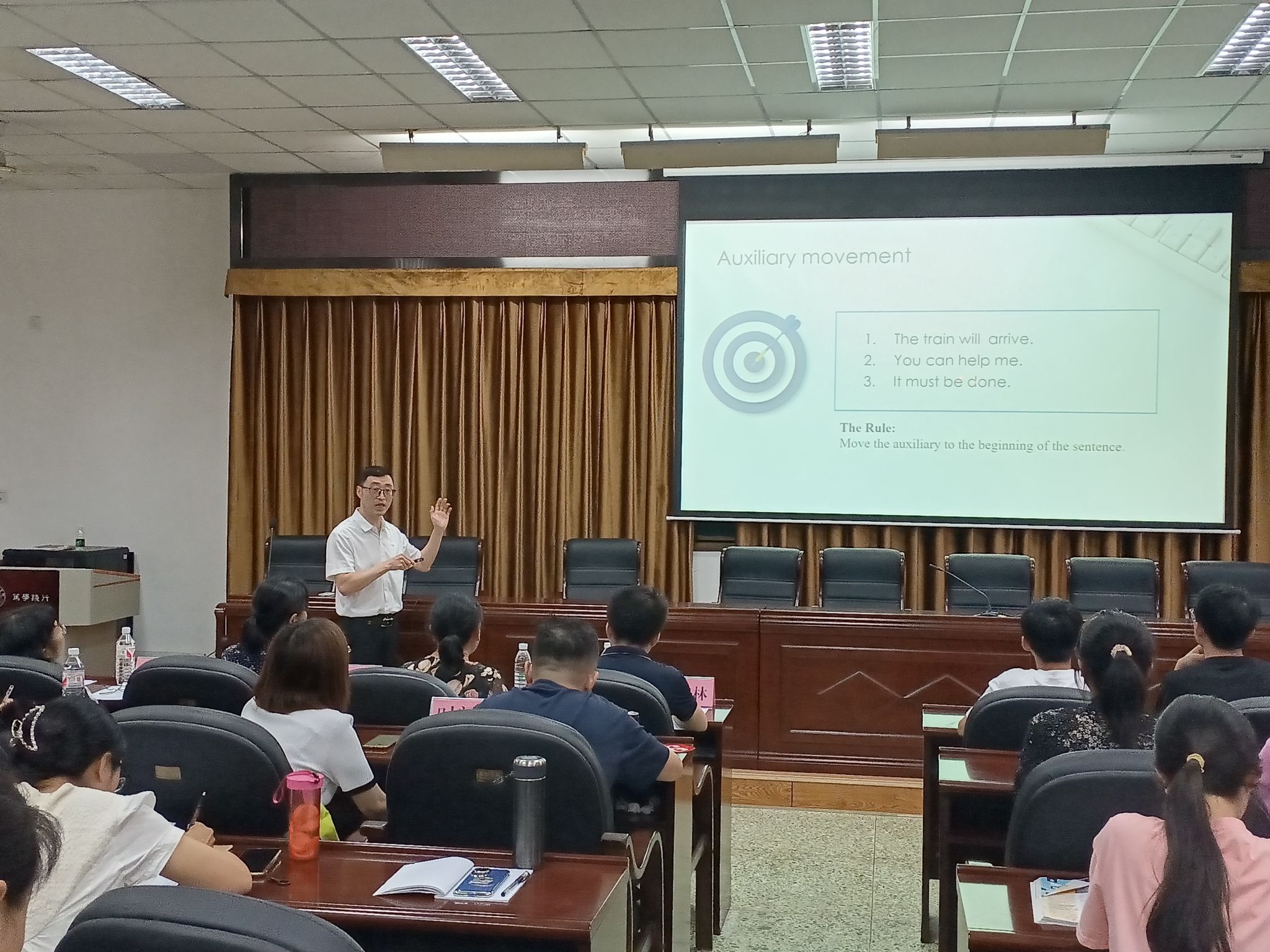 赛后,评委代表刘丽平对此次竞赛做了分析和点评。她充分肯定了参赛教师们为此次竞赛做出的努力。她分别从教师素质、教学素养、教学设计、教学技术与创新等方面提出了建设性意见。她强调教学实施片段要以突出教学重点和难点为核心,精准把握和设计各个教学环节。她提出课堂教学中老师们要注重学生情感素养的塑造,使学生的情感、价值观和批判性思考得以深度拓展。最后,她再次强调教学实践中应将“以学生为中心”的教学理念贯穿始终。同时,老师们应加强传统教学与新兴教学技术的融合,实现教学创新,为学生赋能。徐波分别从老师们的教学内容、教学方法及此次竞赛的教学启示三个方面做了赛事总结。
