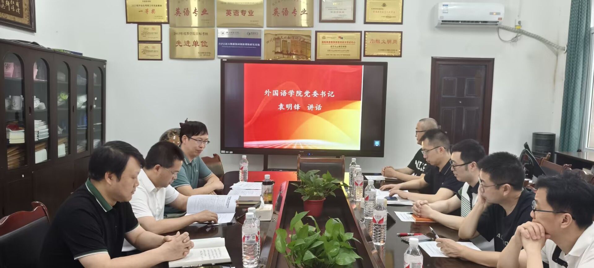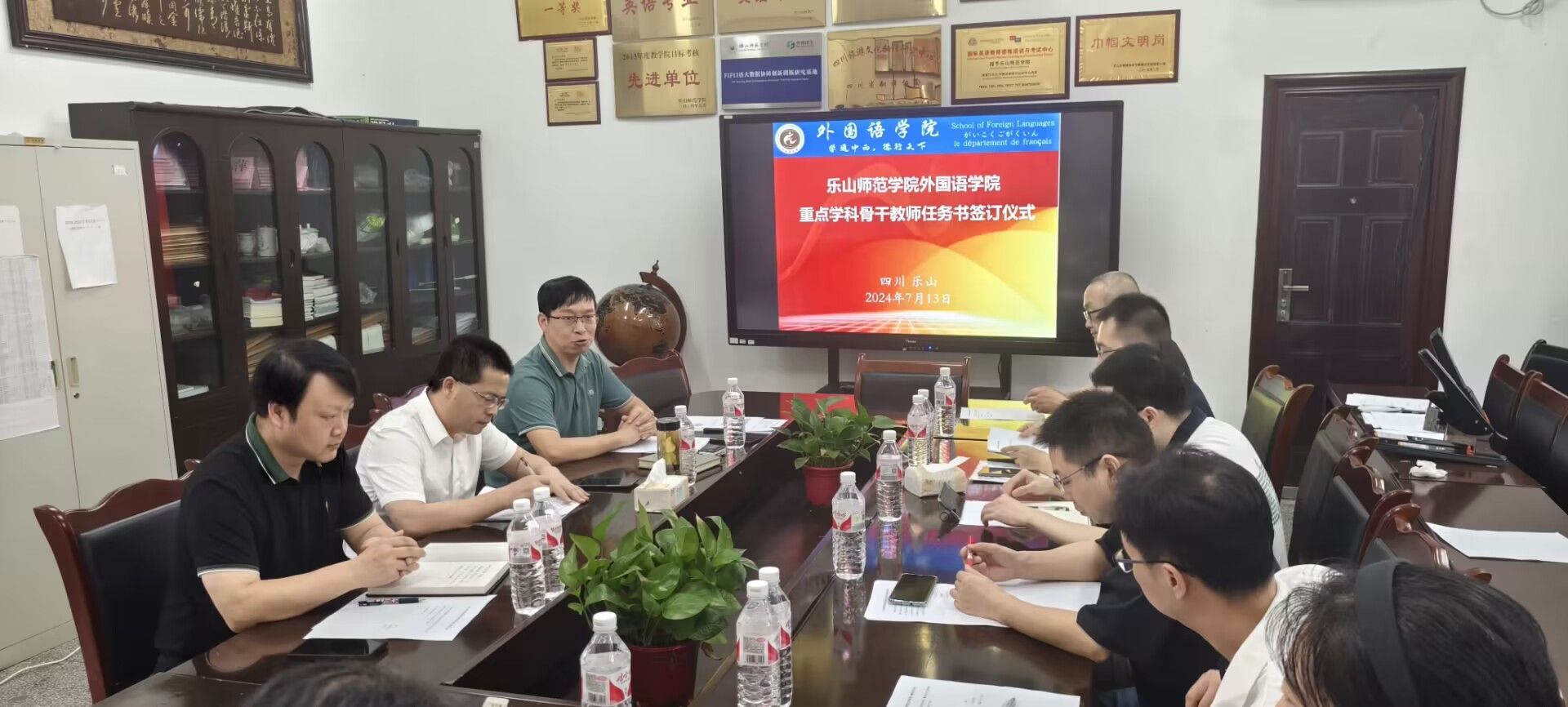 本网讯(文/廖百秋 图/雷洪敏)7月13日上午,外国语学院在学院304会议室召开了2024-2025年重点学科骨干教师聘任会。本次会议由外国语学院副院长陈开富主持,外国语学院党委书记袁明锋、院长江世勇,学科英语、翻译两个优先培育学科骨干教师参加了会议。