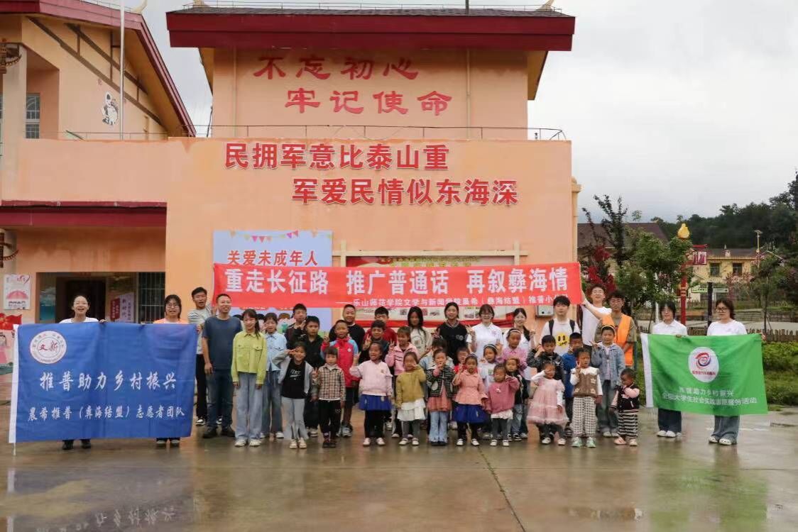 晨希推普助力乡村振兴实践团由文学与新闻学院36名学生组成,分为了晨希(彝海结盟)小分队、晨希(彝心一意小分队、)晨希(声声不息)推普小分队三支社会实践团队,三支团队于7月6日至11日分别赴凉山州冕宁县彝海村、凉山州美姑县牛牛坝镇和乐山市沐川县张村村开展推普助力乡村振兴活动,推普团队为当地儿童开设了主持、朗诵、红色音乐、书法、中国文字的演变、剪纸、粉笔字、传统手工等特色推普课程,为当地孩子送去了知识和温暖。在推普课程的同时,三个推普小分队结合实践当地情况,进行了重走长征路、普通话使用调研、送教进彝家、当地文旅宣传等社会实践活动,亲身感受乡村新变化,用爱促进民族大团结,用脚步丈量祖国大地,助力乡村振兴。