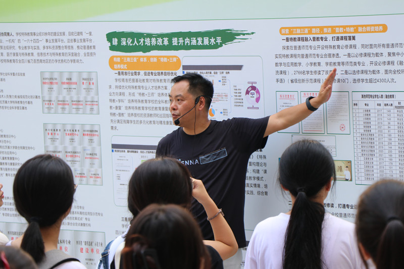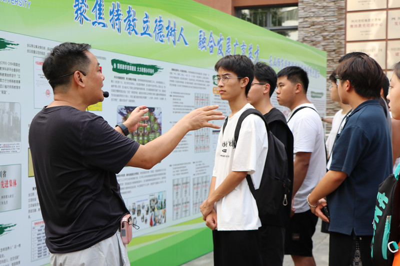 随后,刘书记详细介绍了学院目前的工作开展情况、现状以及对未来的美好期待。他带领同学们从特教A栋大门口的宣传展板开始,逐一介绍了学院发展情况,并自豪地向同学们展示了学院的奖牌,彰显了学院的辉煌成就。同时他还详细介绍了学院考研情况,激励新同学们以他们为榜样,努力学习,追求卓越。此外,他还带领同学们参观了国家语言文字推广基地(世界杯葡萄牙vs加纳波胆预测 )——视力残疾和听力残疾人员普通话测试站。