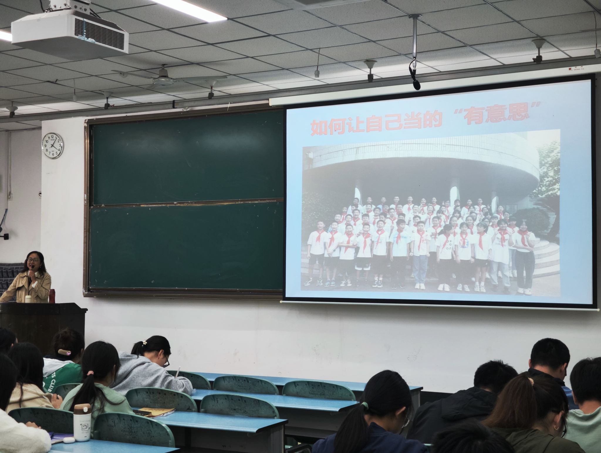 乐山市实验中学梁玲老师以“当班主任有点意思”为主题给同学们分享班级管理经验。梁老师主要从班主任工作与教师专业发展、班主任工作的处理方法与技巧、班级管理的课程建设、润身教育的课程建设和养善教育的课程建设等方面,为同学展开生动详实的讲解,并以亲身经历讲述如何管理好处于青春期的中学生。