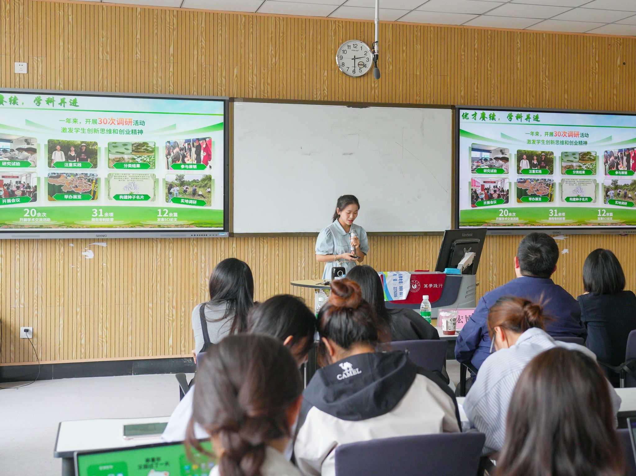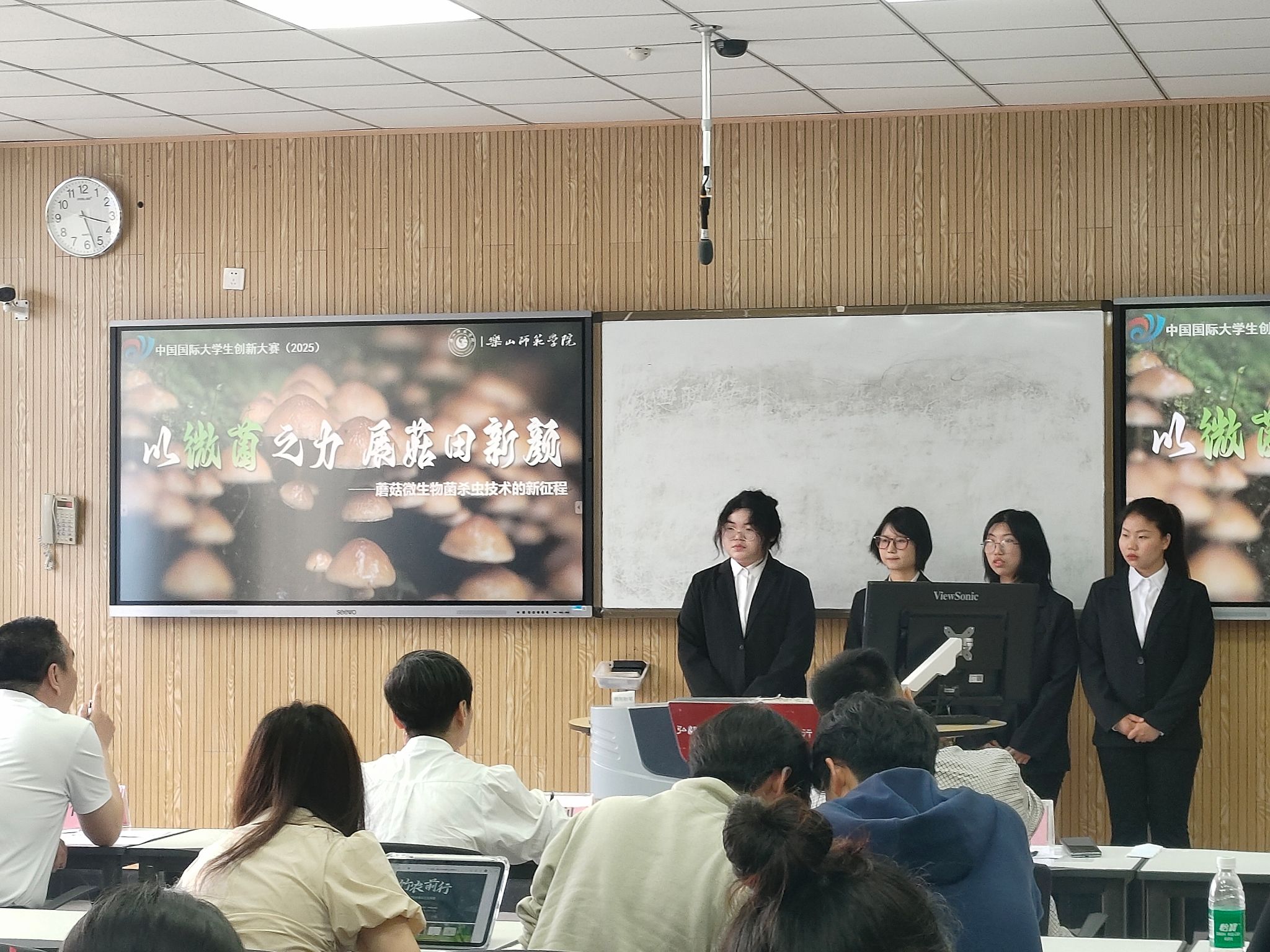 本网讯(文/杨思语、周俊涵 图/徐希贝、熊洁)4月25日下午,中国国际大学生创新大赛(2025)校内选拔赛决赛在行知楼智慧教室顺利举行。本次赛事由创新创业学院主办,数理学院、经济管理学院承办,全校200余名师生参加了此次比赛。