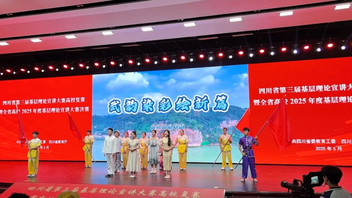 我校“乐师红帆”理论宣讲团在初赛环节从全省80余所高校作品中脱颖而出顺利进入决赛,与四川大学、西南交通大学等12所高校同台宣讲,展现新时代青年学子的理论风采,最终以90.82分斩获第三名。