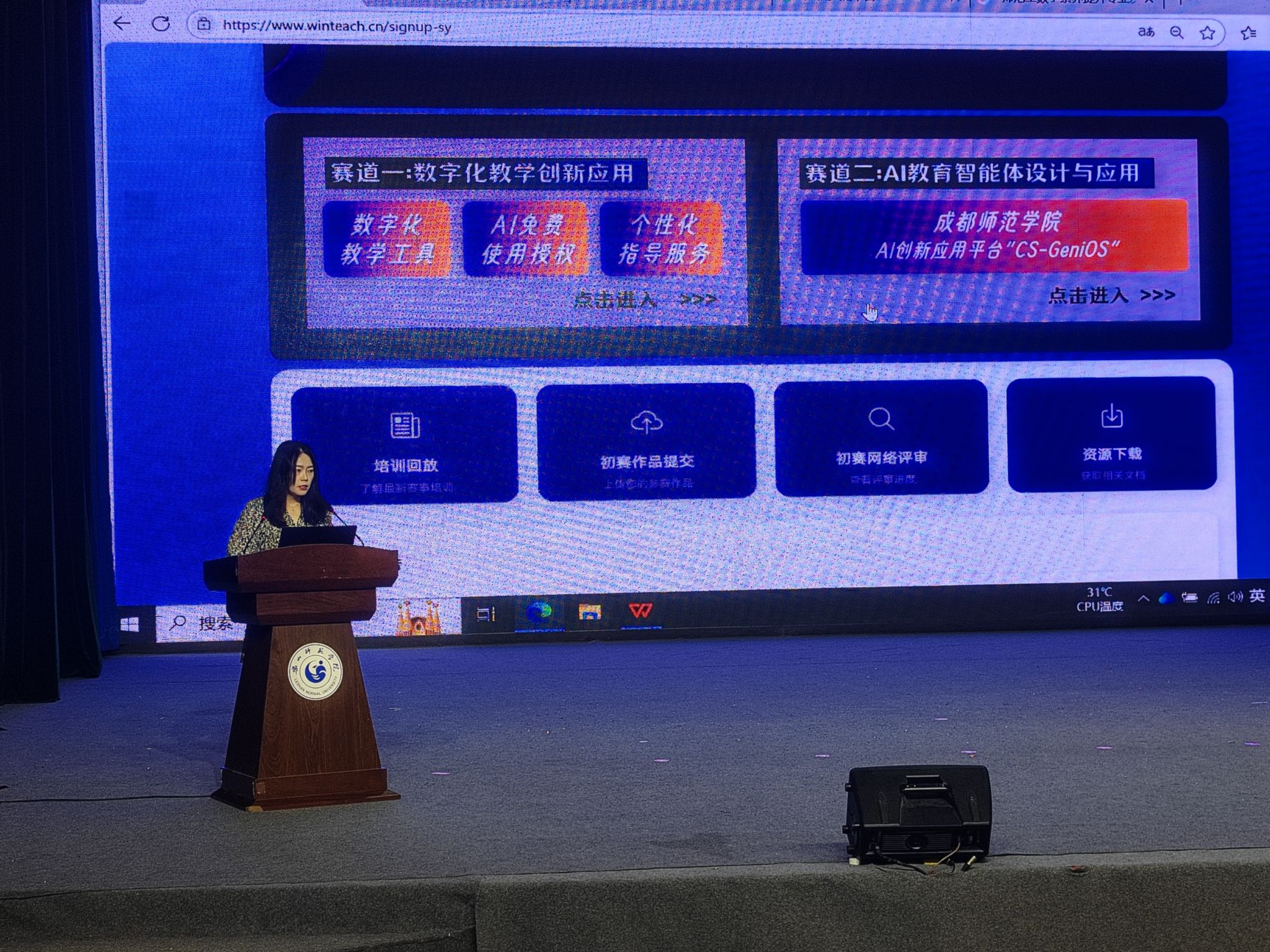 培训中,教育信息化推进办公室专家甘胜江系统解读了"四川省师范生数字素养与人工智能创新应用大赛"的核心内容,重点围绕大赛背景、目标定位、赛程规划及奖项体系等关键要素展开阐释,为参赛师生厘清了备赛方向与实施路径,提供了全方位的赛事指南。