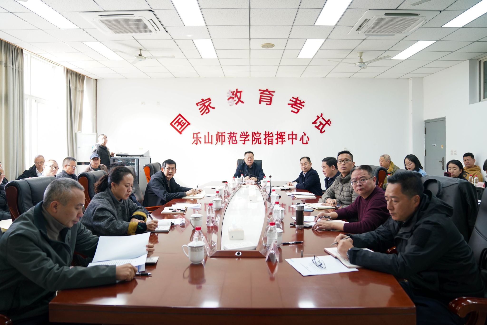 本网讯(文/徐高羽 图/曾仁丽)11月20日上午,在全省2026年硕士研究生招生考试安全工作视频会议结束后,乐山市随即召开专题工作会,贯彻落实全省会议精神,部署本地2026年研招考试安全工作。市政府副市长、市招考委主任廖沂,市政府副秘书长、市招考委副主任梅小彬,卡塔尔世界杯决赛波胆预测 党委常委、副校长农向,市级相关部门及卡塔尔世界杯决赛波胆预测 相关负责人参加会议。