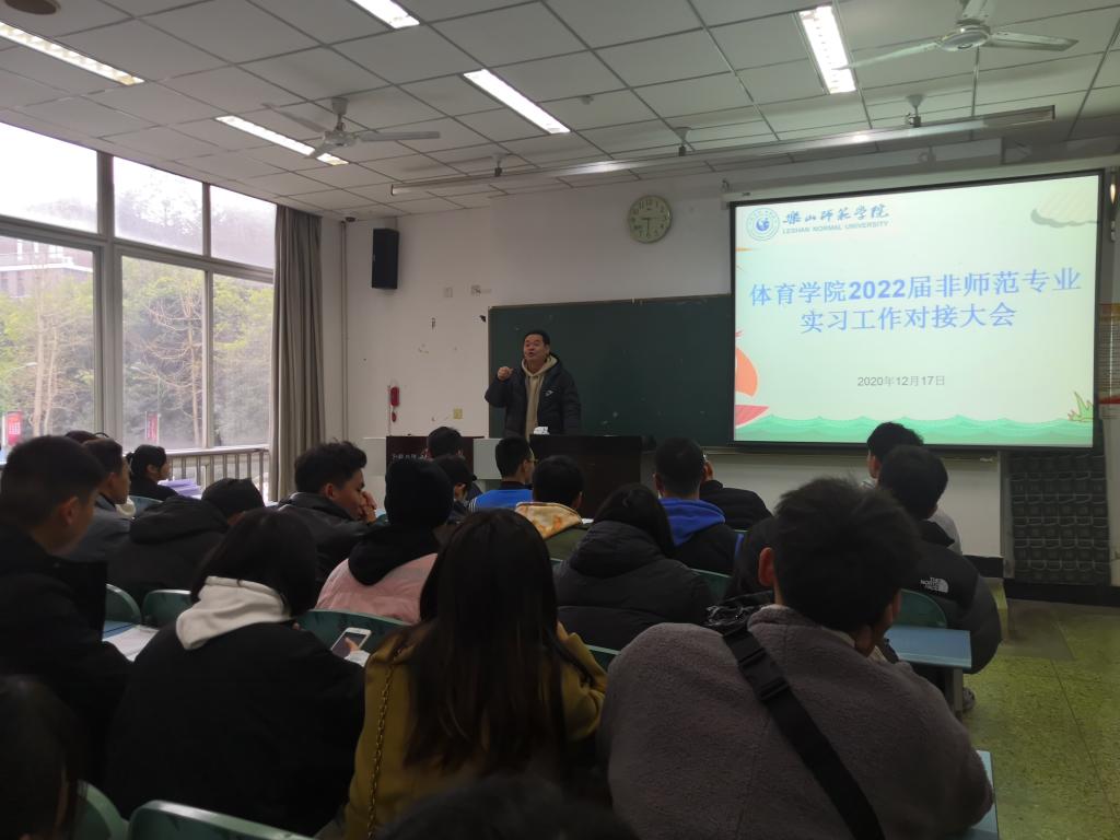 本网讯(文/图 杜小敏)12月17日上午9时,体育学院在行知楼112教室召开2022届非师范专业实习对接会,体育学院党总支副书记陈勋玮、副教授汪明伟、科研与实验管理科科长刘秋出席,毕业班辅导员杜小敏和全体非师范生参加,副院长张爱平主持。