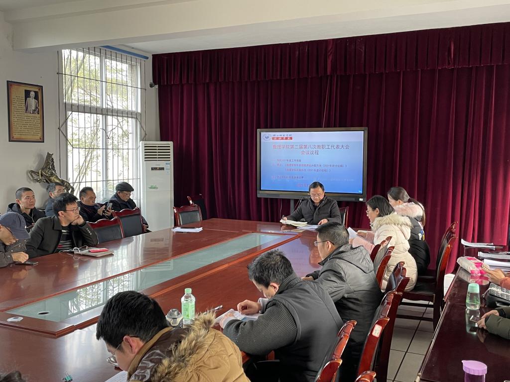本网讯(文、图/余瑶)为进一步公开、公平、公正年终二级学院绩效分配方案,本着“按劳分配、多劳多得、优劳优酬、不劳不得”的分配原则,充分调动教职工的积极性和创造性,12月30日下午,数理学院在会议室召开了第二届八次教职工大会。本次会议的议程有两项:一是审议《数理学院年度绩效津贴分配方案(2021年讨论稿)》和《数理学院奖励办法(2021年讨论稿)》;二是通报2021年分工会经费收支情况。全体教职工参与了此次会议,会议由院长屈小兵主持。