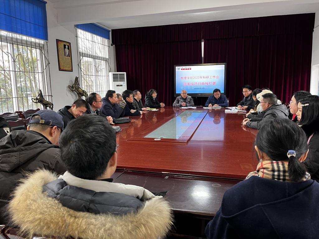 本网讯(文、图/黄凯)2月20日,数理学院组织2022年国家级项目申报负责人和部分科研骨干召开2022年科研工作会。数理学院学术委员会成员及学院领导班子参加了本次会议。分管科研副院长黄凯介绍了学院2022年科研工作要点,要求老师们一方面对今年申请的项目申报书进行认真打磨,另一方面做好科研规划,为后续科研项目申报和团队平台建设做好准备。随后,各位老师介绍了国家级项目申报及打磨情况,学术委员会专家对申报书提出了进一步修改的意见。会上,大家踊跃发言,积极分享科研项目申报心得体会。
