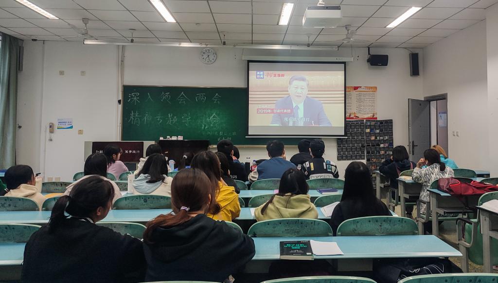 本网讯(图、文/张晴茜)3月8日上午,数理学院组织各年级学生通过电视、网络等媒体形式,收看两会转播及相关报道。