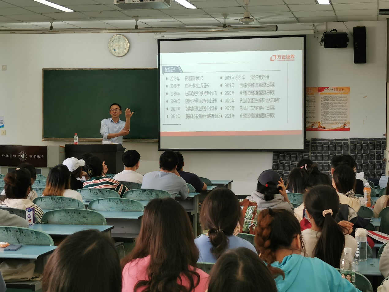 本次讲座活动是我院为促进校企合作、协同育人效果的系列活动之一,也是我院为鼓励学生参加本学期即将举行的股票模拟投资大赛、提高竞赛能力,专门进行的竞赛指导讲座之一。本次讲座有利于我院学生及早树立正确的投资观,以及通过对证券行业岗位人才需求条件的了解,早日为就业做准备,提高就业能力。