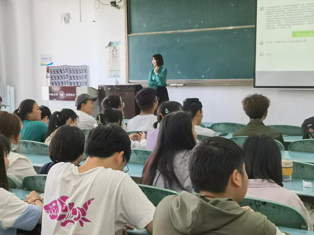 许若星老师首先向21级同学做了自我介绍,表达了愿与大家互相陪伴、共同成长的美好希冀。随后,周琴老师以“让我们一起向未来”为题开展了宣讲会。