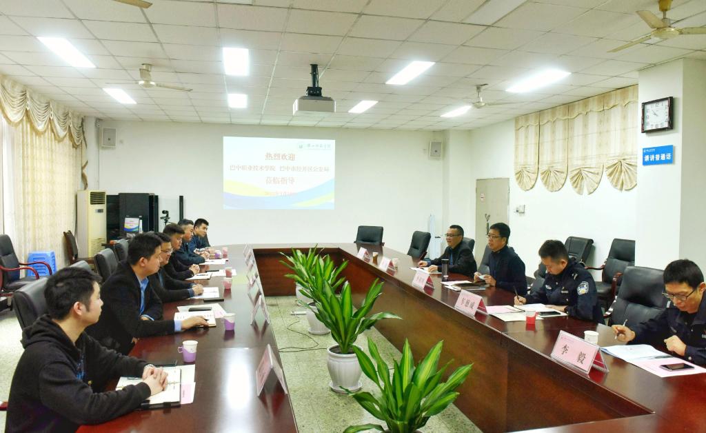 本网讯(文/杜鸿 图/徐凌云、薛小丽)3月24日,巴中职业技术学院院长助理吴祖秧一行到我校考察交流警务室建设、安全保卫管理及具体措施等相关工作。校党委常委、副校长李朝晖热情接待了吴祖秧一行,并在弘毅楼207会议室开展交流座谈。乐山市公安局市中区分局海棠派出所所长车慈威、驻校民警李毅,校党委武装保卫部副部长罗刚、梁光德,安全保障中心主任张志强陪同。
