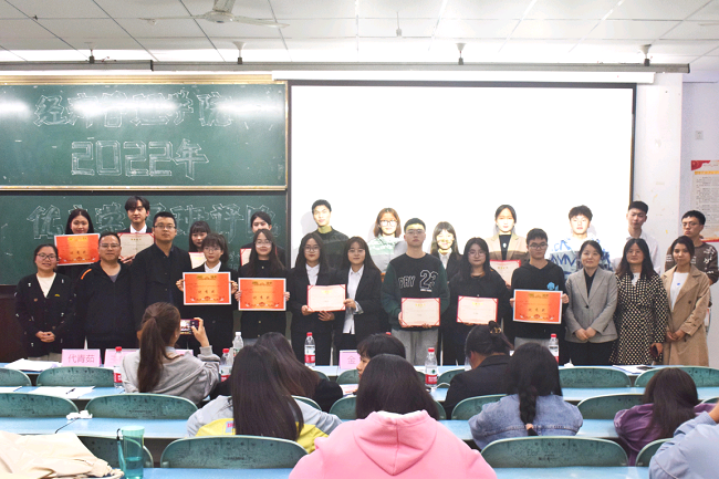 本网讯(文/罗丹,图/李怀宇、任凯成)3月27日晚上,经管学院于行知楼举行了2022年优良学风班评比活动。学院党委副书记(主持党务工作)丁敏娜、学生科长包天骏、辅导员王东健、金蓉、代青茹、陈聪等参加了本次活动,学院2019级和2020级各班依次进行展示。