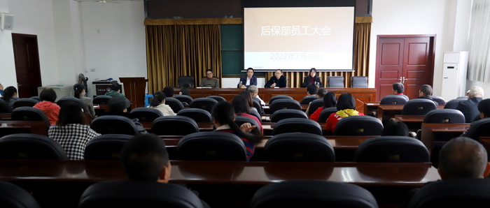 本网讯(文、图/代成刚)后保部于3月28、29日,分别组织9个中心员工在弘毅楼312、412、413教室召开了员工大会。大会由后保部部长袁明锋主持,党总支书记林天兴,副部长周彦杉、何志伦参加会议并讲话。