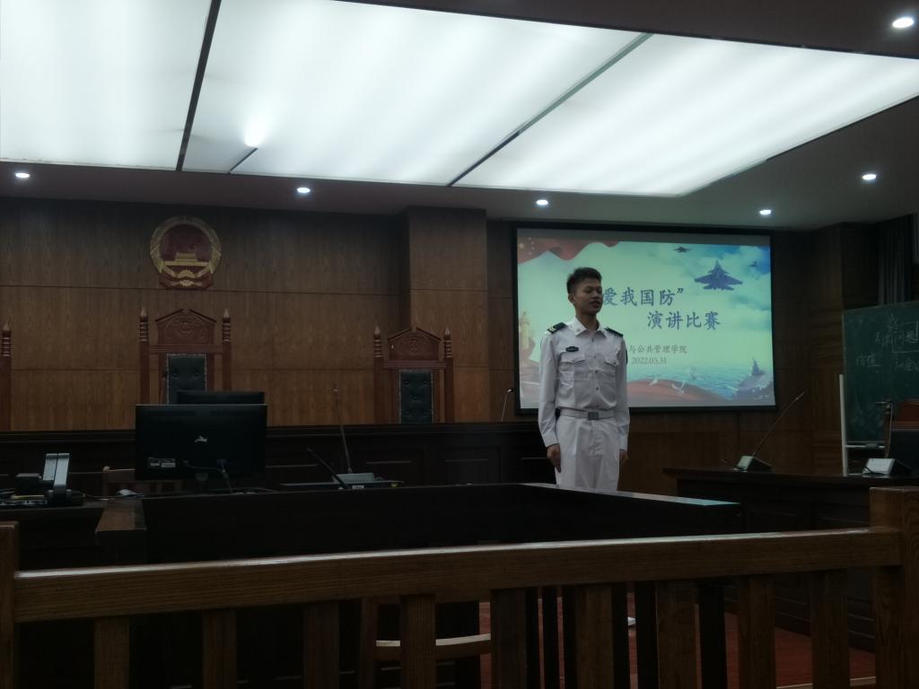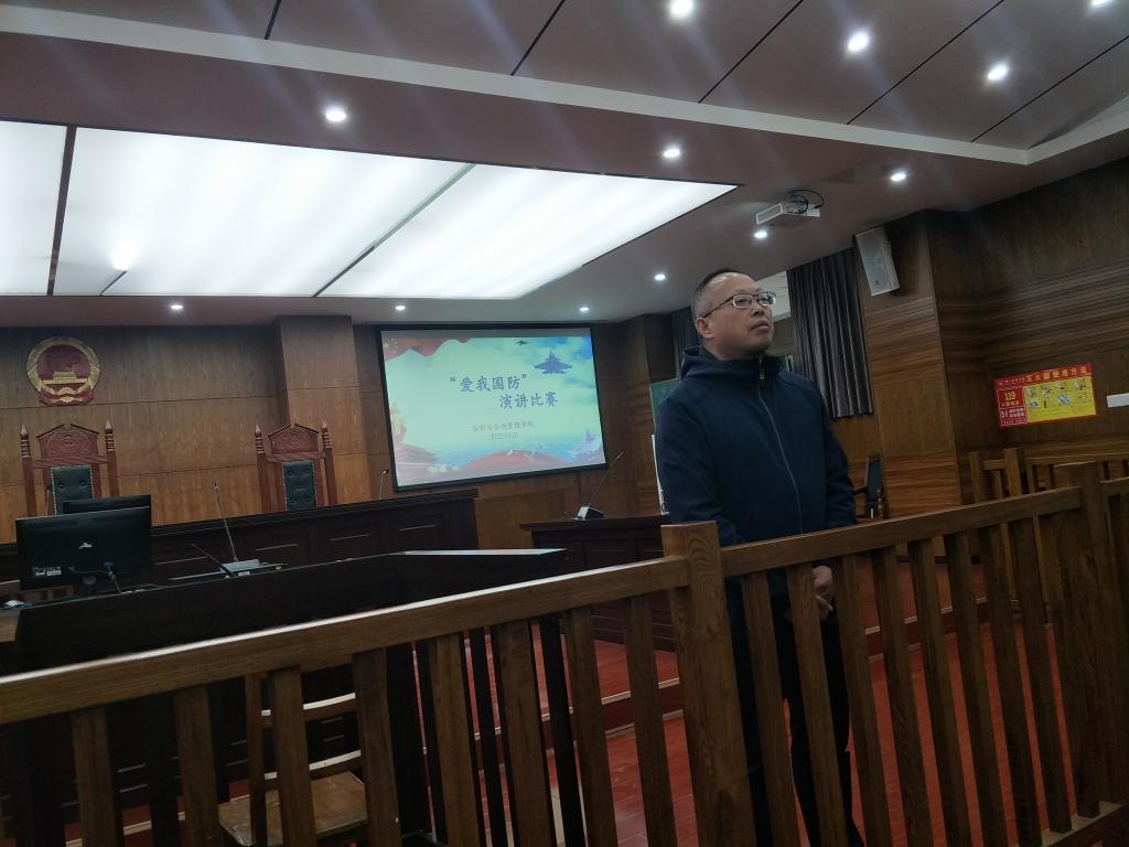 本网讯(文/杨兵 图/梁慧)为了普及大学生的国防知识,增进国防意识、厚植爱国情怀,3月31日下午1点,法学与公共管理学院在弘毅楼313教室举办了“爱我国防”演讲比赛。参赛选手是来自21级到19级的学生,主要以退役大学生和预备役学生为主;本次比赛由法管学院党委书记程勇、党委副书记周琴、学生科长杨兵、党委学生工作部许亚梅老师、辅导员刘佳佳老师等担任评委;各年级学生代表120余人参与了此次活动。