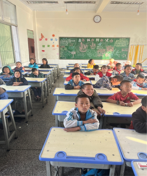 山区孩子们的求知欲望都非常强烈。最让我印象深刻的是二年级小朋友们,我作为他们的书法老师第一次去他们班上课时,他们告诉我说以前的美术课、书法课、音乐课等都没有老师给他们上。他们还想学习英语,但奈何二年级还没有开设英语课,于是我决定把他们的课堂变得多元一些,将他们想学习的知识都融入我的课程中,这样才能满足小小的孩子们那强烈的求知欲,让他们学到更多。