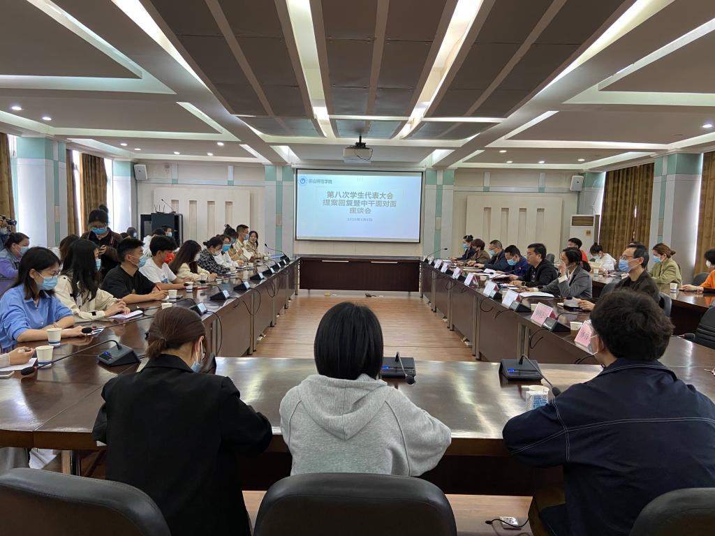(本网讯 文/杨蓓蓓、陈芋伶 图/杨紫慧、尹骞昊)4月8日上午,校团委组织召开了第八次学生代表大会提案回复暨中干面对面座谈会。学工部、武装保卫部、教学部、后保部、师科公司等八个职能部门负责人以及各学院的学生代表参会。会议由校团委书记李东主持。